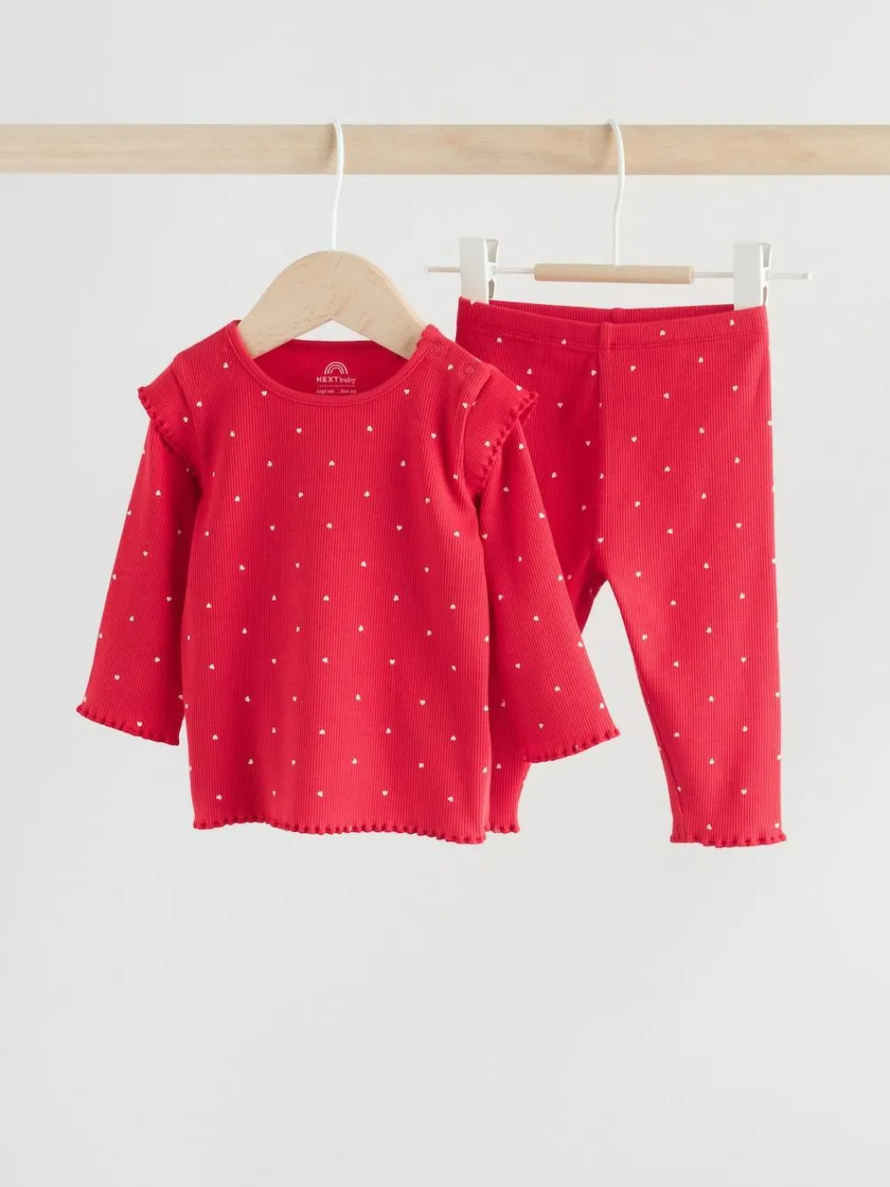 This Baby Top and Leggings 2 Piece Set is a cozy and charming choice for playdates or everyday wear. Crafted from a cotton blend with added stretch, this duo is designed for maximum comfort and lasting appeal. Two-piece set including top and leggings. Cosy cotton blend fabric with stretch. Frill shoulder detail on the top. Lettuce hem finish on cuffs and hem. Nickel-free poppers for easy dressing. No harmful chemicals or dyes used. Machine washable. T-shirt and Leggings 95% Cotton, 5% Elastane. Warning: Keep away from fire and flames.