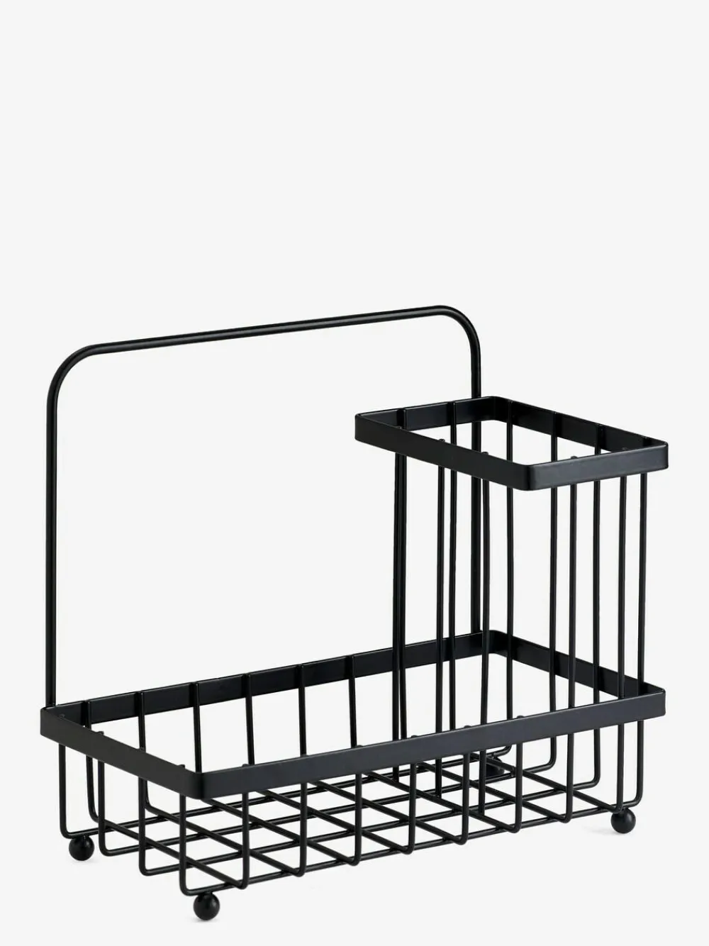Keep your kitchen sink area organised and tidy with our large wire caddy. In a matte black finish, this item is perfect for storing washing up liquid bottles (even the XL size!) and brushes. Divided into two handy sections, it also has a wire handle that is perfect for drying out cloths. A great, multi functional addition to your kitchen unit. Wire sink caddy 2 handy sections Stylish and functional Height 20cm Width 22cm Depth 12.5cm 100% Metal.