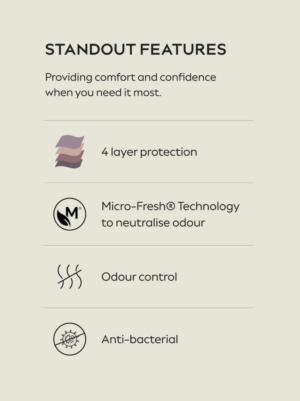 Designed with a discreet anti-leak gusset for extra protection, these no vpl knickers are a great staple for leaky bladders, as extra protection when on your period or ideal for post-partum use. 4 layer anti leak protection Micro-Fresh(R) Technology to neutralise odour Odour Control Anti-Bacterial Machine washable. 2 x Knickers Main 66% Nylon, 34% Elastane. Gusset 100% Polyester. Items with the curve logo are available in sizes 18 and above.