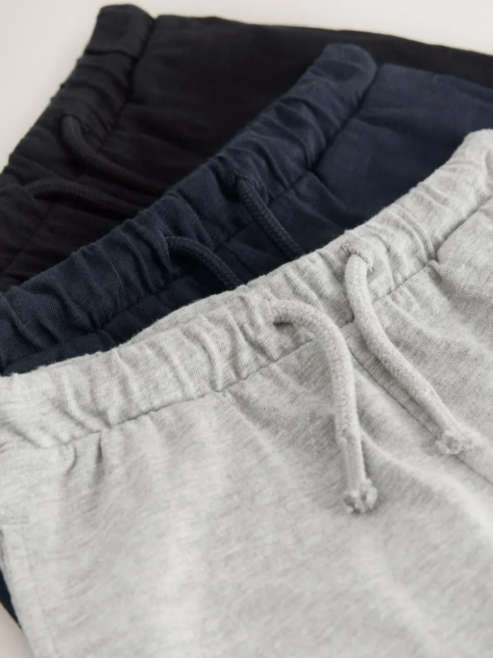These practical Black/Grey/Navy Blue Lightweight Shorts 3 Pack are comfortable essentials for warm weather. This 3 pack includes one pair of navy blue, one black, and one light grey marl shorts, all featuring an elasticated waist with a drawcord. 3 pack shorts Includes black, grey, and navy blue colours Lightweight fabric Elasticated waist with drawcord Machine washable. 2 x Shorts Solid 100% Cotton. Shorts Marl 93% Cotton, 7% Recycled polyester.