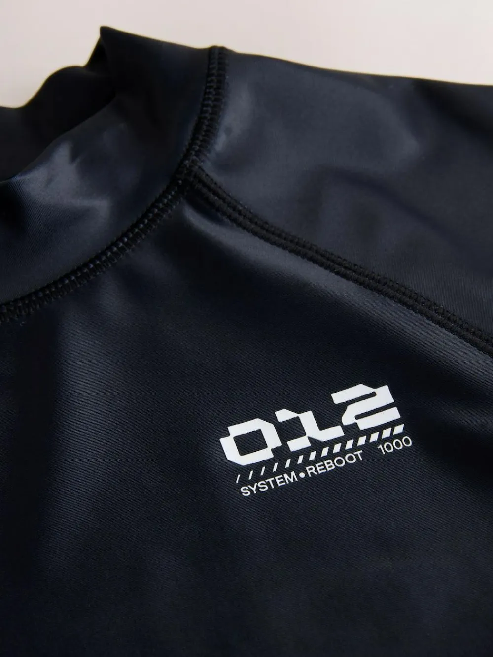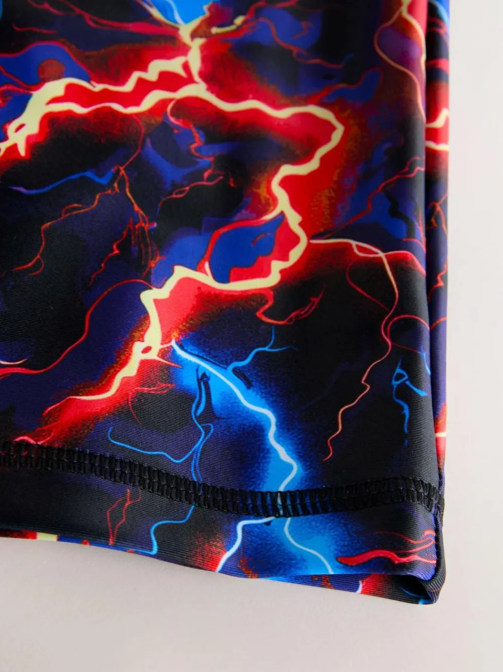 These Black rash vests are made from a lightweight and stretchy fabric with a high neck and has a lightning bolt print. Perfect for the beach, these rash vests have a UPF rating of 50+ on covered areas to protect them from the sun. Age 1.5-2years comes with a zip at the back neck for easy dressing. Short or long-sleeve Lightweight Stretchy fabric Lightning bolt print High collar UPF rating of 50+ Zip at back neck on age 1.5-2years Machine washable. 82% Recycled polyester, 18% Elastane.