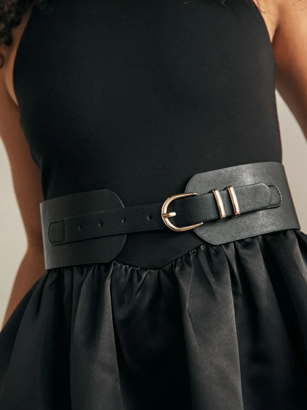 Made from a PU faux leather, this black corset-style belt has a wide design that’s ideal for wearing at your waist for a shape-flattering look, finished with an elasticated back and gold-tone hardware. PU faux leather Wide shape Elasticated back Main 100% Polyurethane. Trim 60% Polyester, 40% Elastane.