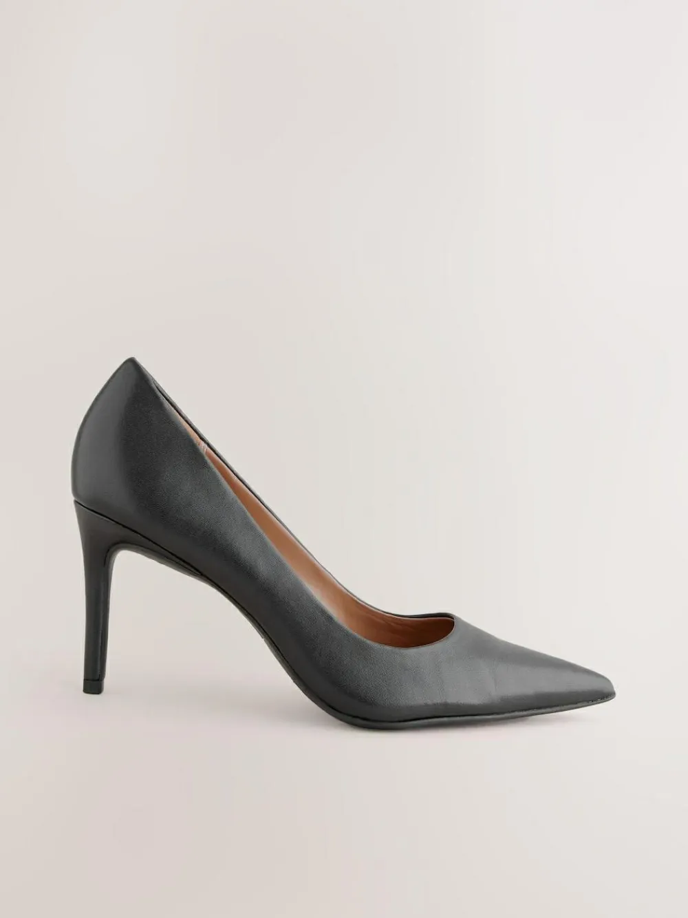 Easy to style and timeless, these black court shoes feature a leather upper with a breathable leather lining, a stylish pointed toe design and a stiletto style heel. The Forever Comfort® insole ensures all-day comfort with a supportive memory foam. Leather upper Point toe Court shoe Slip-on style High heeled Forever Comfort® memory foam padding Heel height 8.5cm. Upper – Leather, Lining & Sock – Other Materials, Sole – Other Materials.