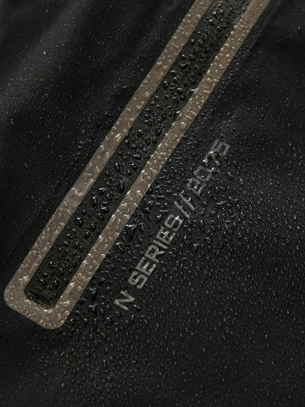 Waterproof, windproof, cosy and stylish, this modern raincoat in black has a zip-fastened front with a set-in hood and reflective safety prints for nights, boasting a microfleece lining for added warmth, zippered side pockets and touch-fastened sleeve cuffs. Waterproof Windproof Zip fastening Set-in hood Zippered side pockets Microfleece lining Touch-fastened cuffs Machine washable. Main 100% Recycled polyester. Lining 100% Recycled polyester.
