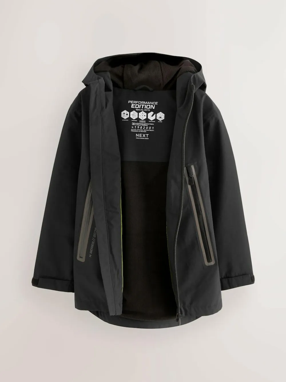 Next Black Waterproof Fleece Lined Hooded Jacket (3-16yrs)^BOY Coats & Jackets|Snowsuits & Coats