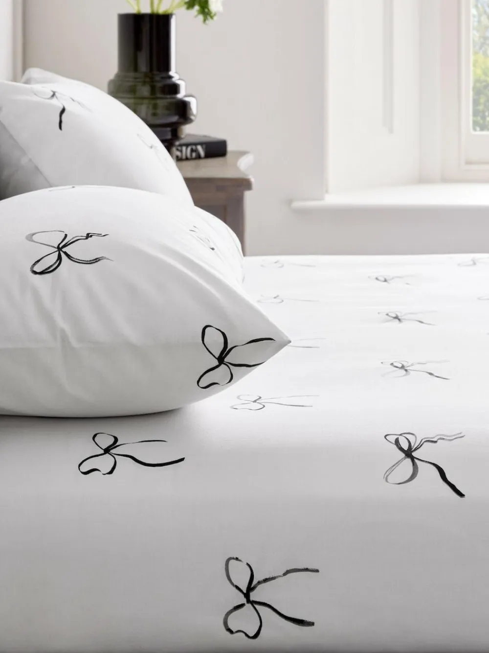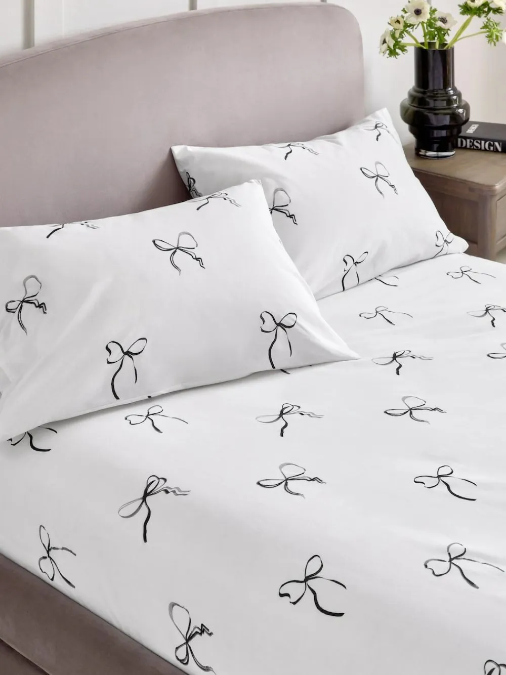 Next Black/White Bow Fitted Sheet and Pillowcase Set^ Bedsheets & Pillow Cases