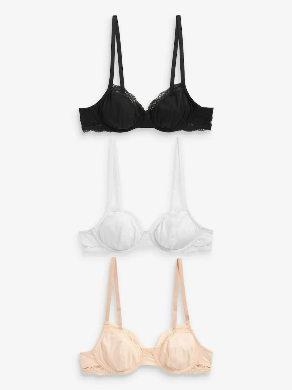 Be the first to review “Next Black/ White/Pastel Rose Nude Non Pad Balcony Cotton Blend Ultimate Comfort Bras 3 Pack^Women Bras” Cancel reply