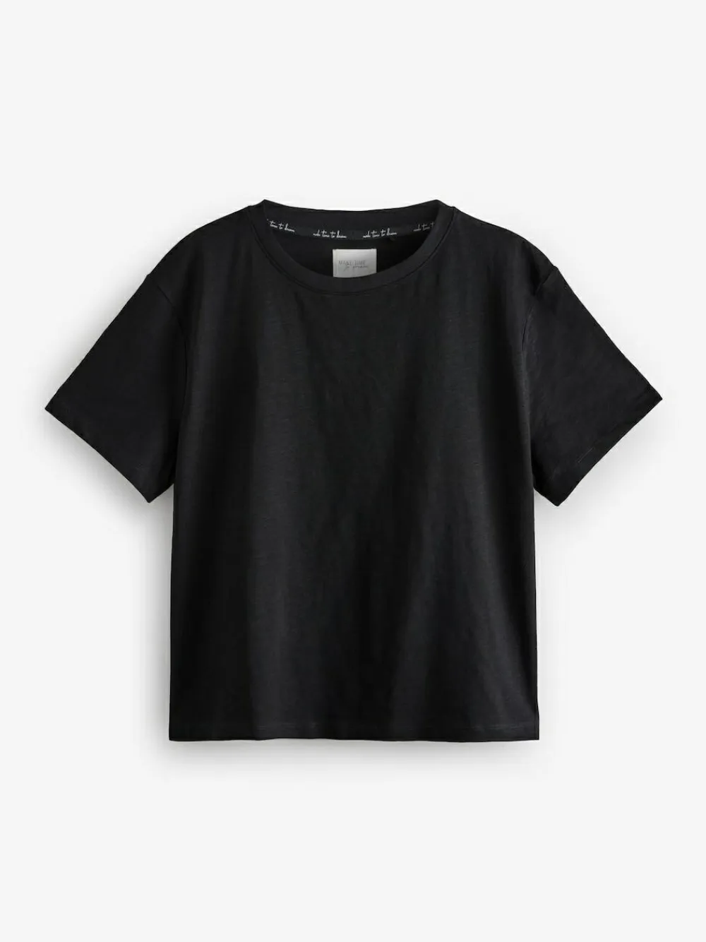 Stock-up on bedtime essentials, with this 2-pack of pyjamas, featuring short sleeve relaxed fit cotton t-shirts with crewneck collars, alongside full-length bottoms with an elasticated waistband and side pockets. 2-pack 100% cotton Relaxed fit Short sleeve tops Full-length bottoms Pyjama Top ecru and Pyjama Top black Main 100% Cotton. Rib 95% Cotton, 5% Elastane. Pyjama Bottom and Pyjama Bottom 98% Cotton, 1% Metallised fibre, 1% Polyester. Items with the curve logo are available in sizes 18 and above., Warning: Keep away from fire and flames., Our tall collection is designed to fit women 5’10” and above. This has been proportionally increased through the body, leg and sleeve to achieve the perfect fit. Available in sizes 8-20.