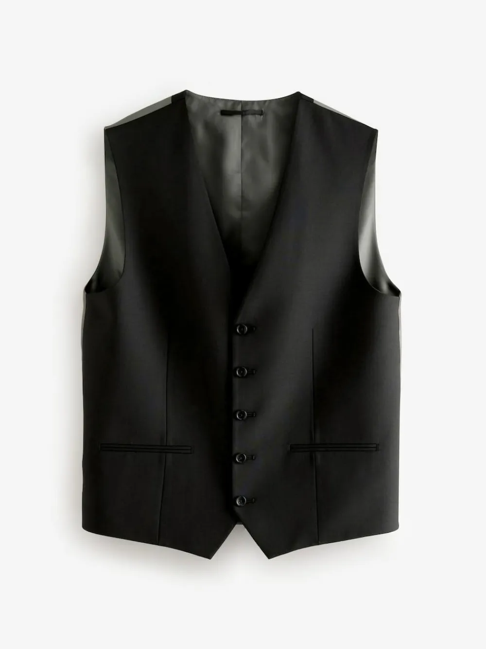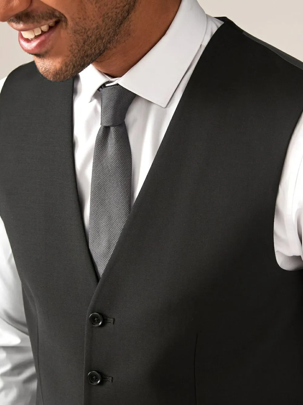 Next Black Wool Blend Motion Flex Suit Waistcoat