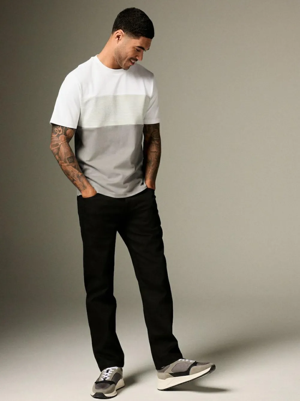 Experience ultimate comfort with our colourblock t-shirt. Crafted from a supersoft fabric, this tee offers a luxurious feel against the skin and is designed for year-round wear. The stylish colourblock design adds a modern touch, making it a versatile addition to any wardrobe. Perfect for layering or wearing on its own, this t-shirt combines comfort and style effortlessly. Wardrobe staple Colourblock design Super soft fabric Machine washable. Main 100% Cotton. Panel 75% Cotton, 25% Recycled polyester.