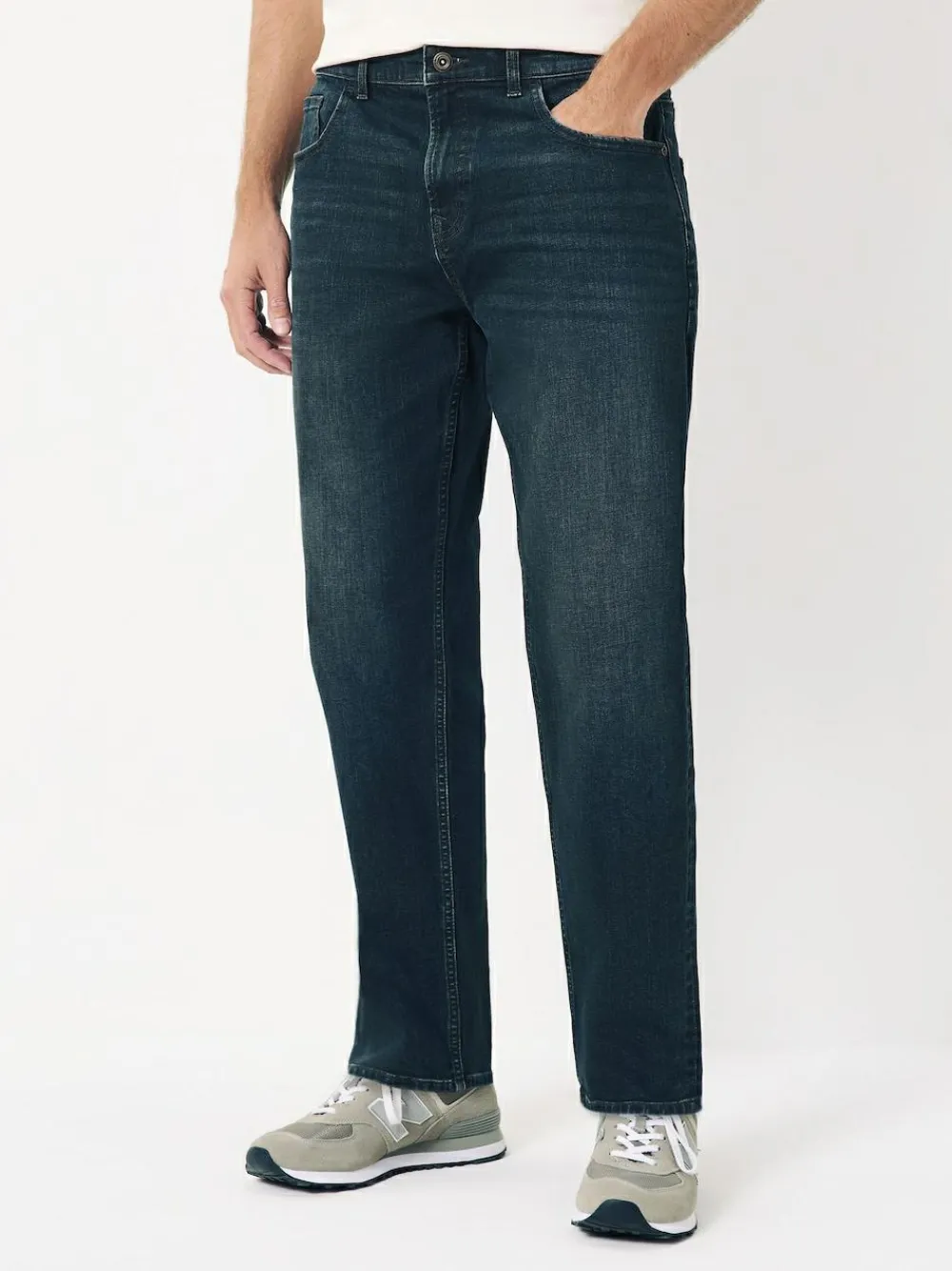 Achieve a classic look with these regular tapered-fit jeans in a washed dark blue. Crafted from a comfortable stretch denim, they offer a modern silhouette that’s perfect for everyday wear. The style and versatile design make them a true wardrobe staple. Regular tapered fit Stretch denim Five pockets Button and zip fly fastening Machine washable. 92% Cotton, 6% Recycled polyester, 2% Elastane.