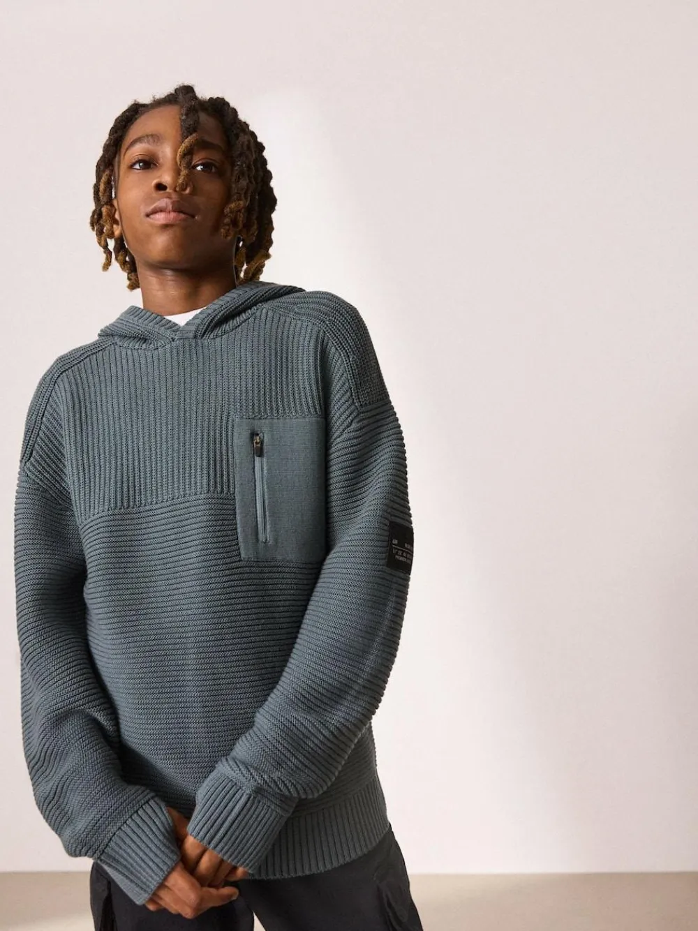 Next Blue Utility Knitted Hoodie (3-16yrs)^BOY Sweatshirts & Hoodies|Knitwear & Sweaters