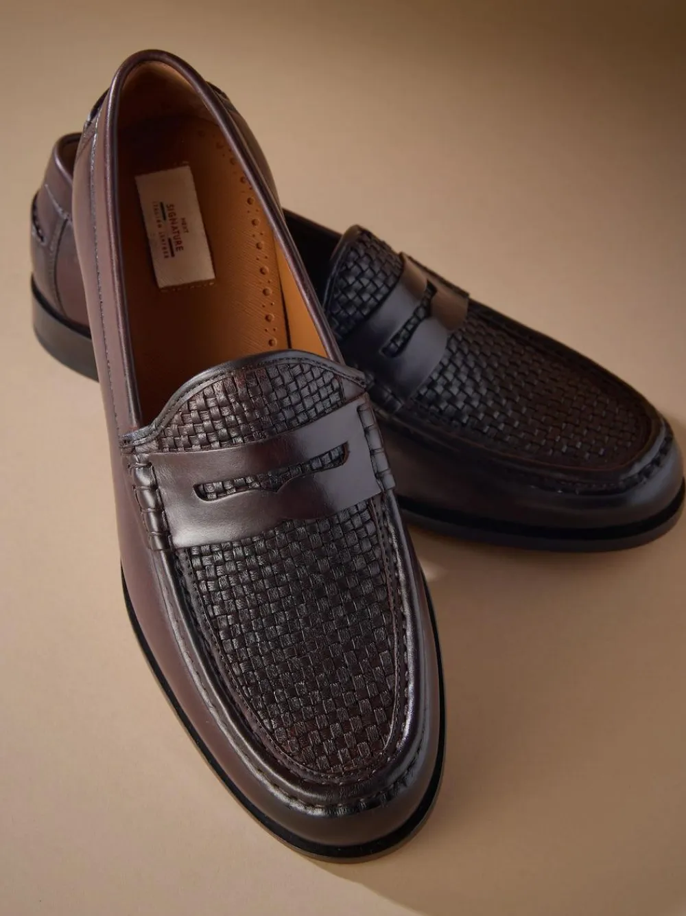 Next Brown Signature Leather Sole Woven Loafers^ Shoes