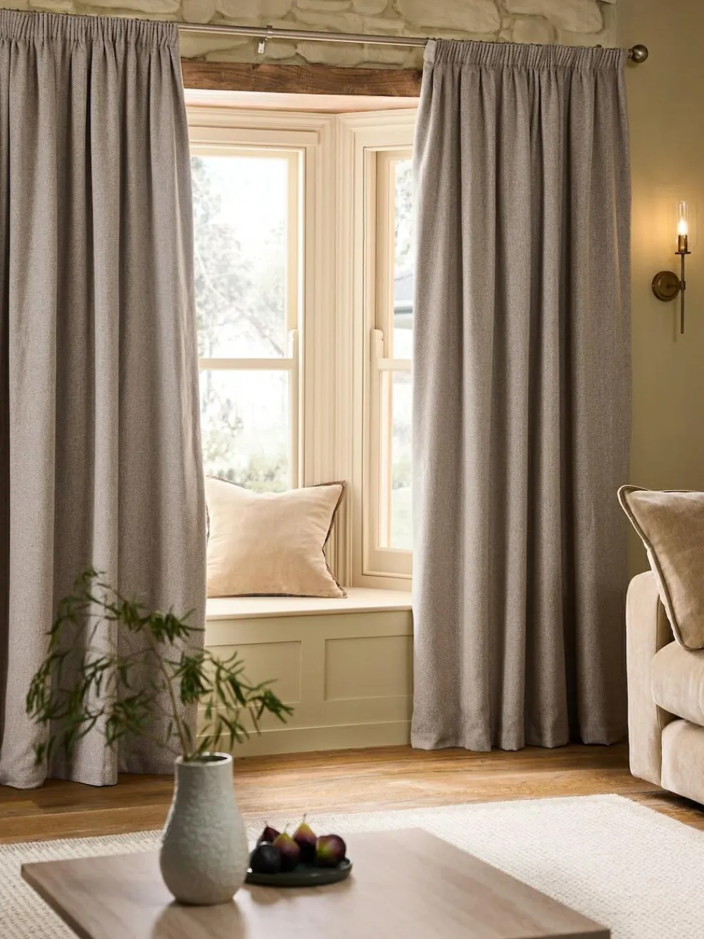 Next Brushed Herringbone Pencil Pleat Blackout Thermal Curtains^ Curtains & Blinds