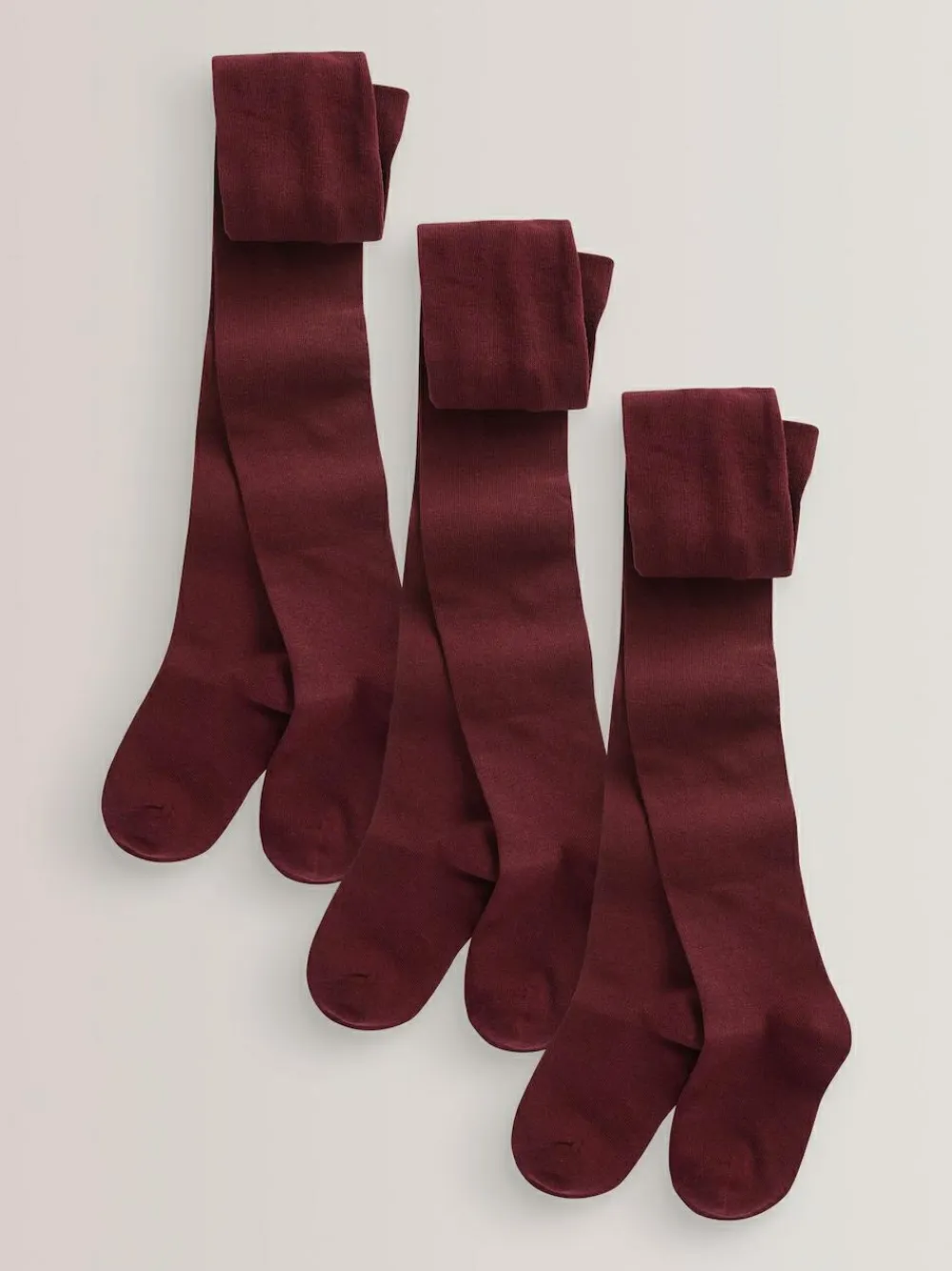Next Burgundy Red Regular Length 3 Pack Cotton Rich School Tights^ Socks & Tights|Socks & Tights