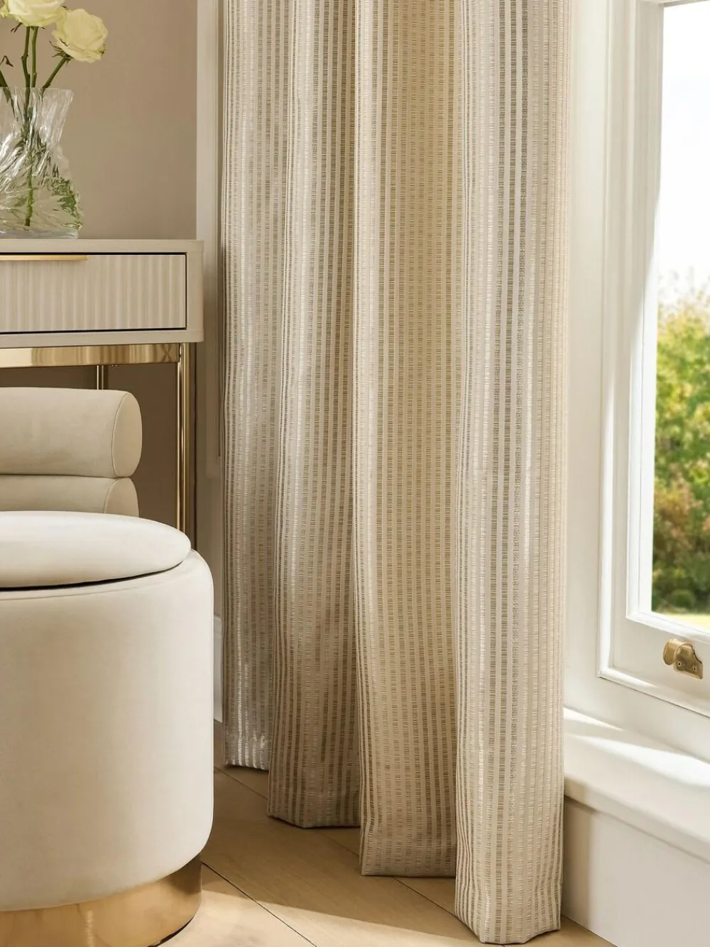 Next Champagne Gold Stripe Jacquard Eyelet Lined Curtains^ Curtains & Blinds