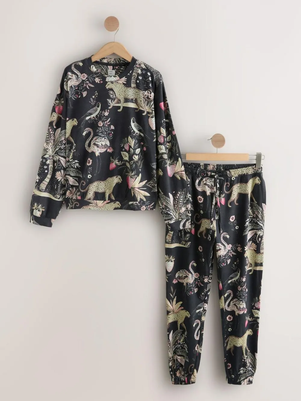 Next Charcoal Grey Leopard Long Sleeve Pyjamas^Women Pyjamas|All Night & Lounge