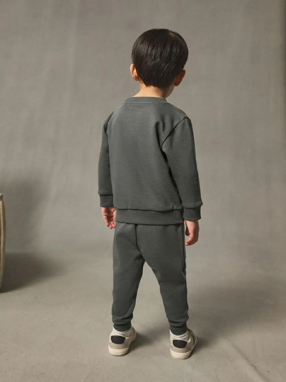 Dress your little one in this essential two-piece look with our Sweatshirt And Joggers Set. This matching tracksuit is an everyday essential, providing a perfectly coordinated outfit that is both casual and comfortable. The sweatshirt features a classic crew neck while the soft joggers have cuffed ankles for a snug fit. This simple, stylish set is great for play and easy to dress up – just team with trainers for a complete, laid-back ensemble. 2 piece set Crew neck sweater Cuffed joggers Machine washable. Sweater and Jogger 80% Cotton, 20% Recycled polyester.