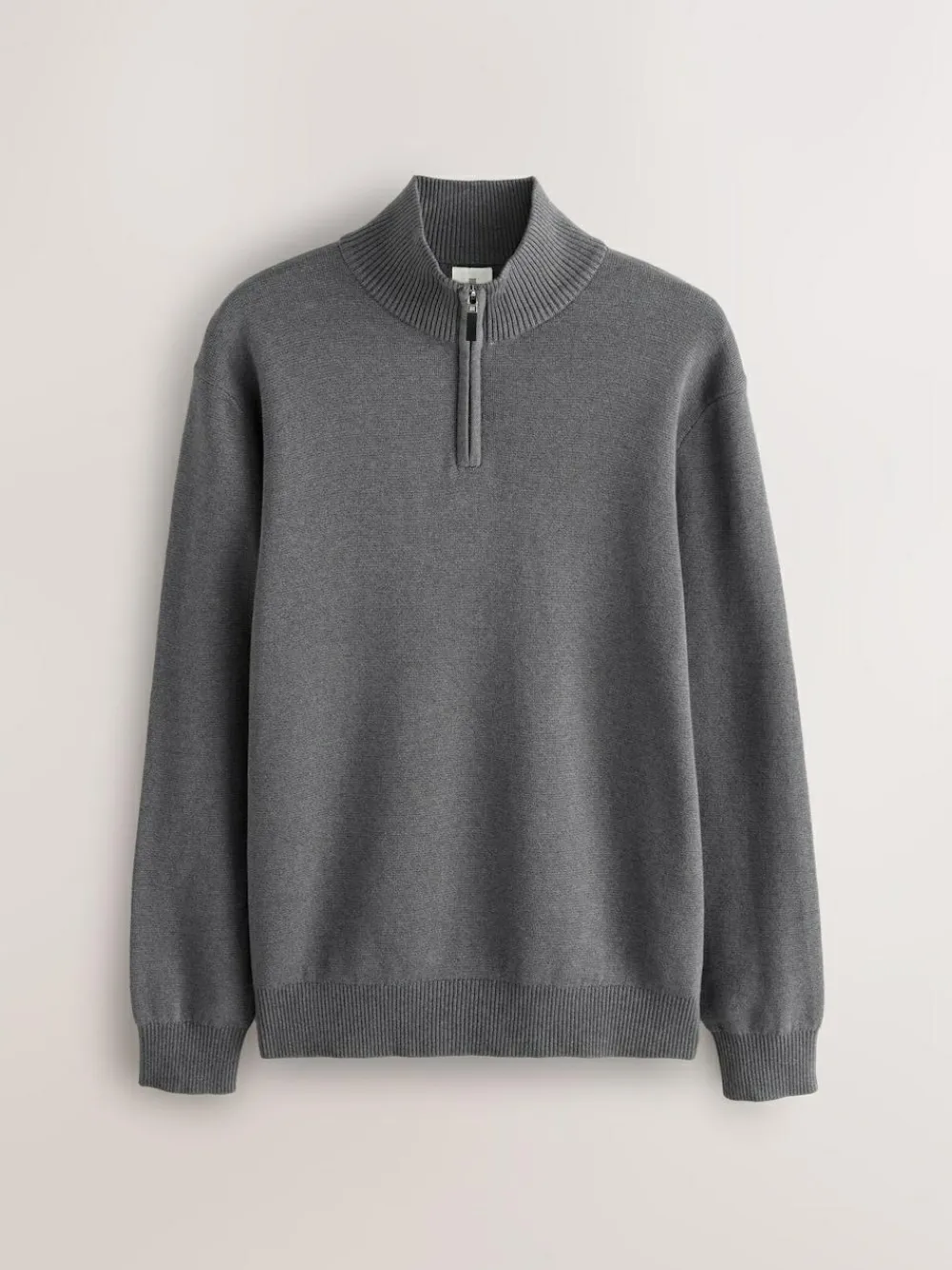 Next Charcoal Grey Plain N.Premium Regular Fit 100% Cotton Premium Quarter Zip Jumper^ Knitwear|Knitwear