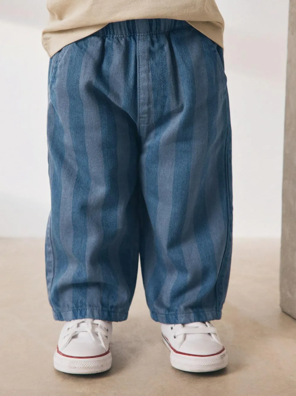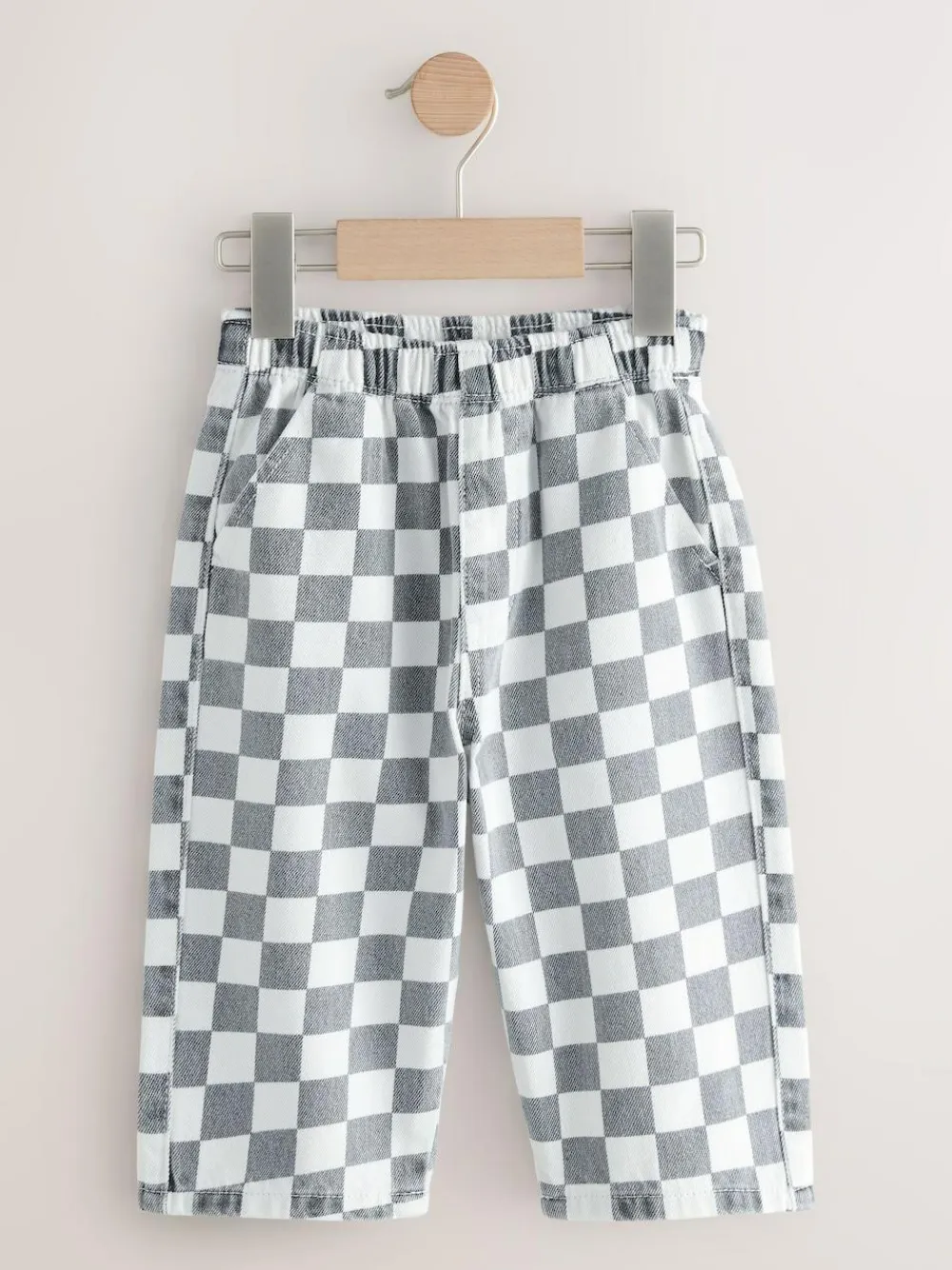 Next Checkerboard/Blue Stripe Pull On Wide Trousers 2 Pack (3mths-7yrs)^BOY Pants & Leggings|Multipacks