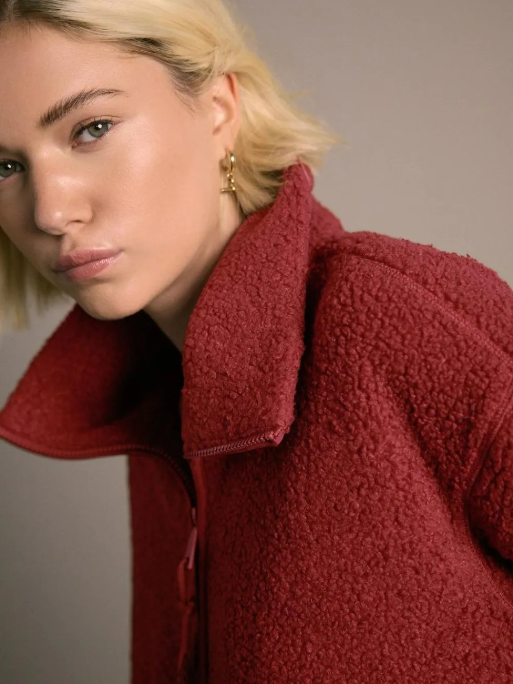 Next Cherry Red Soft Touch Cosy Teddy Borg Quarter Zip Fleece^Women Loungewear