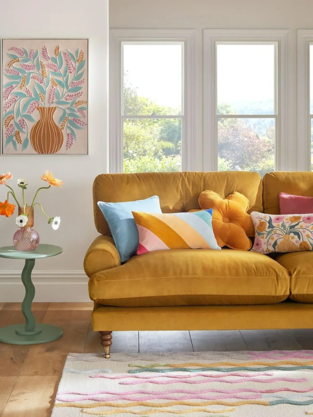 This beautiful embroidered cushion features Pink and Yellow flowers in a vase on natural woven base. A stunning addition to bring texture and colour to an accent chair or sofa. Rectangular cushion Vase design 100% cotton Height 50cm Width 30cm Face 100% Cotton. Reverse 100% Cotton. Inner Lining 100% Polypropylene. Polyester Pad Included.