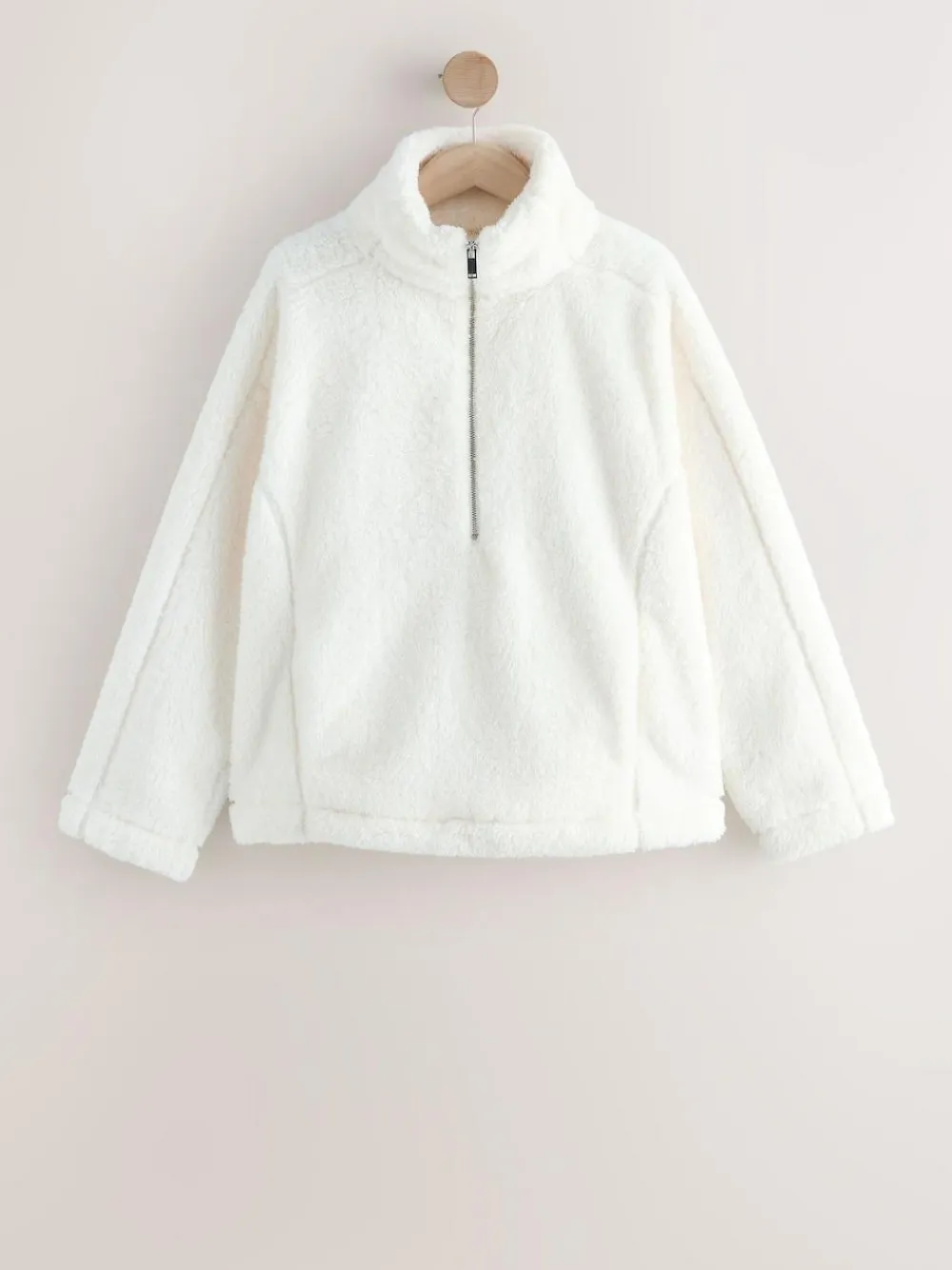 Next Cream Borg Half Zip Fleece^Women Loungewear