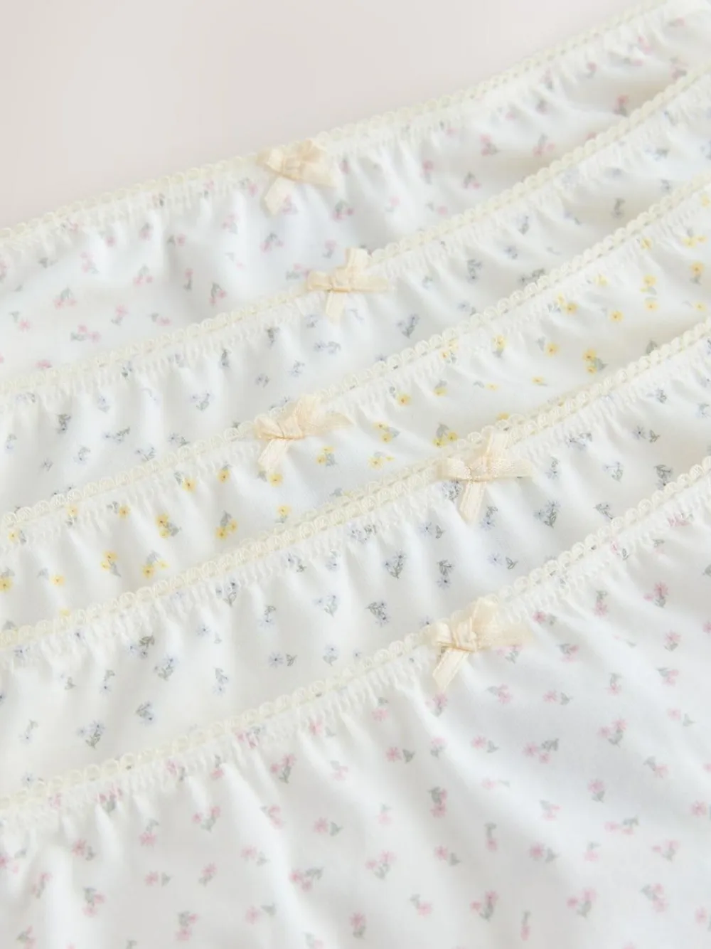 This 5-pack of brief-style underpants are made from a cotton-rich fabric with a high rise, low leg shape and deep side seams, finished in a selection of Ditsy prints. 5-pack Cotton-rich High rise Low leg Machine washable. 5 x Briefs 95% Cotton, 5% LYCRA® XTRA LIFE™ elastane. LYCRA® Xtra Life™ fibre resists fit loss and fibre breakage caused by pool water and sunscreen, giving you long-lasting shape and fit.