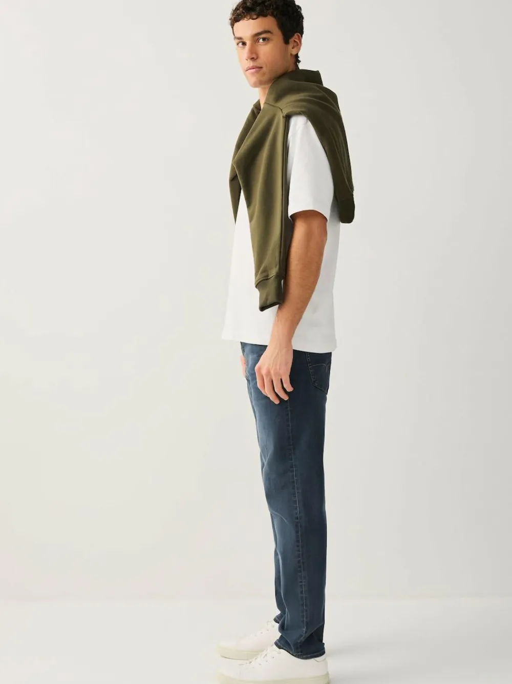 The Motionflex jeans range is made in high-tech dusky blue performance denim. These dusky-blue jeans have been configured to ensure comfort, shape retention and unrestrictive movement wear after wear. The beauty of Motionflex is all in the super, ultra stretch fabrication which makes them both durable and comfortable for all-day, everyday wear. Choose from a variety of fits, leg lengths and washes to find the perfect pair. Slim fit Motionflex jeans Zip Fly Stretch for comfort Machine washable. 65% Cotton, 28% Recycled polyester, 3% Viscose, 2% Polyester, 2% Elastane.
