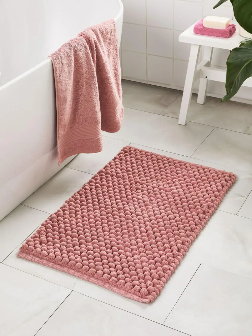 Next Dusky Pink Giant Bobble Bath Mat^ Towels & Bathmats