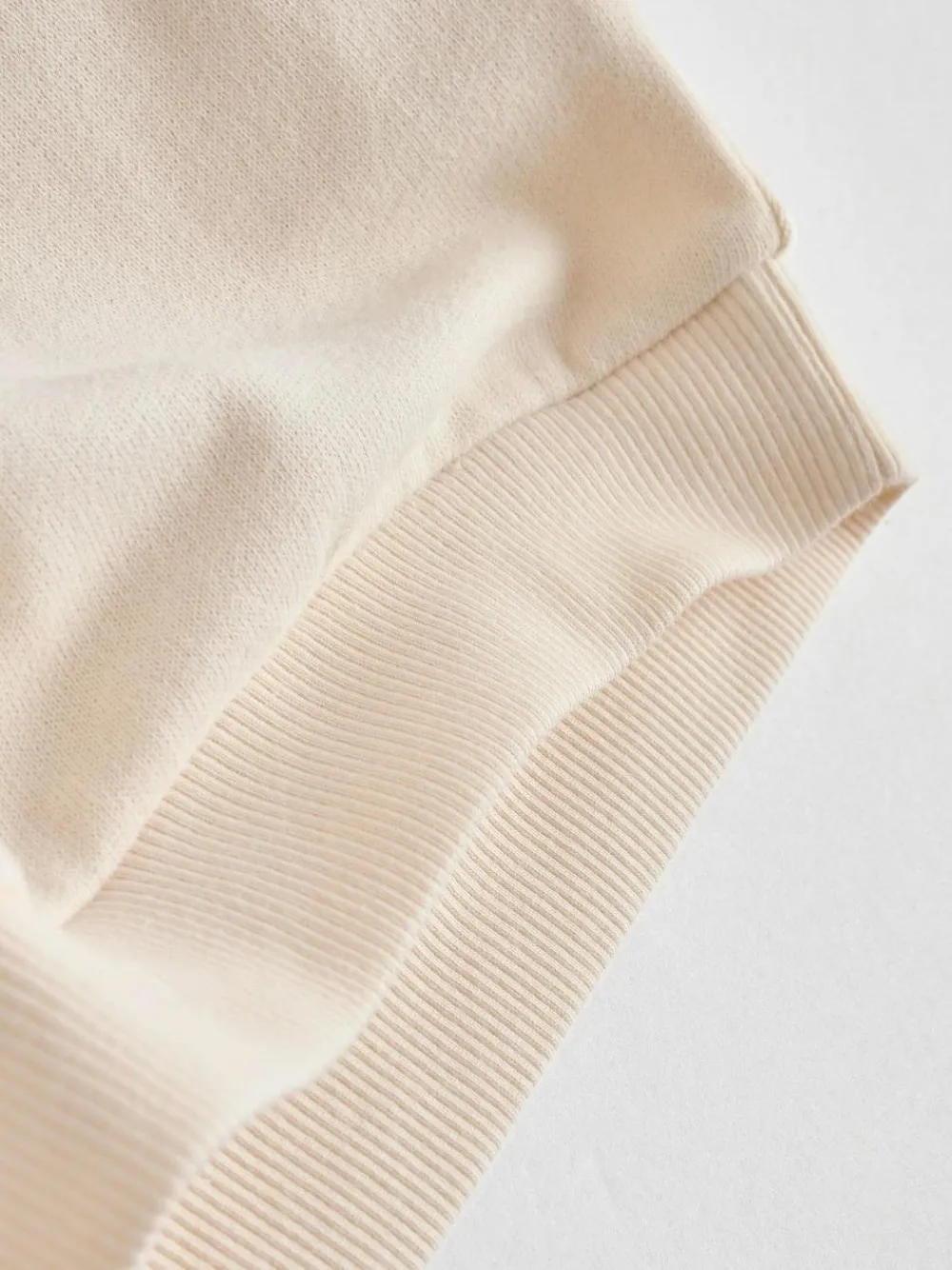 Machine washable. Sweater and Jogger 82% Cotton, 18% Recycled polyester. Warning: Keep away from fire and flames.