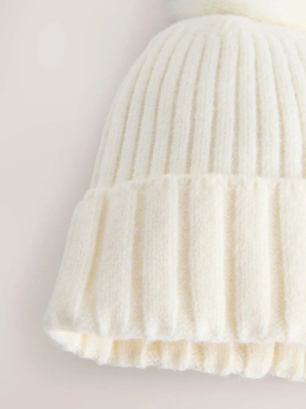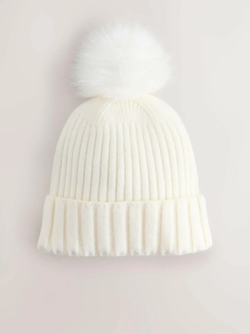 Next Ecru Rib Knit Pom Hat^Women Hats|Hats, Gloves & Scarves