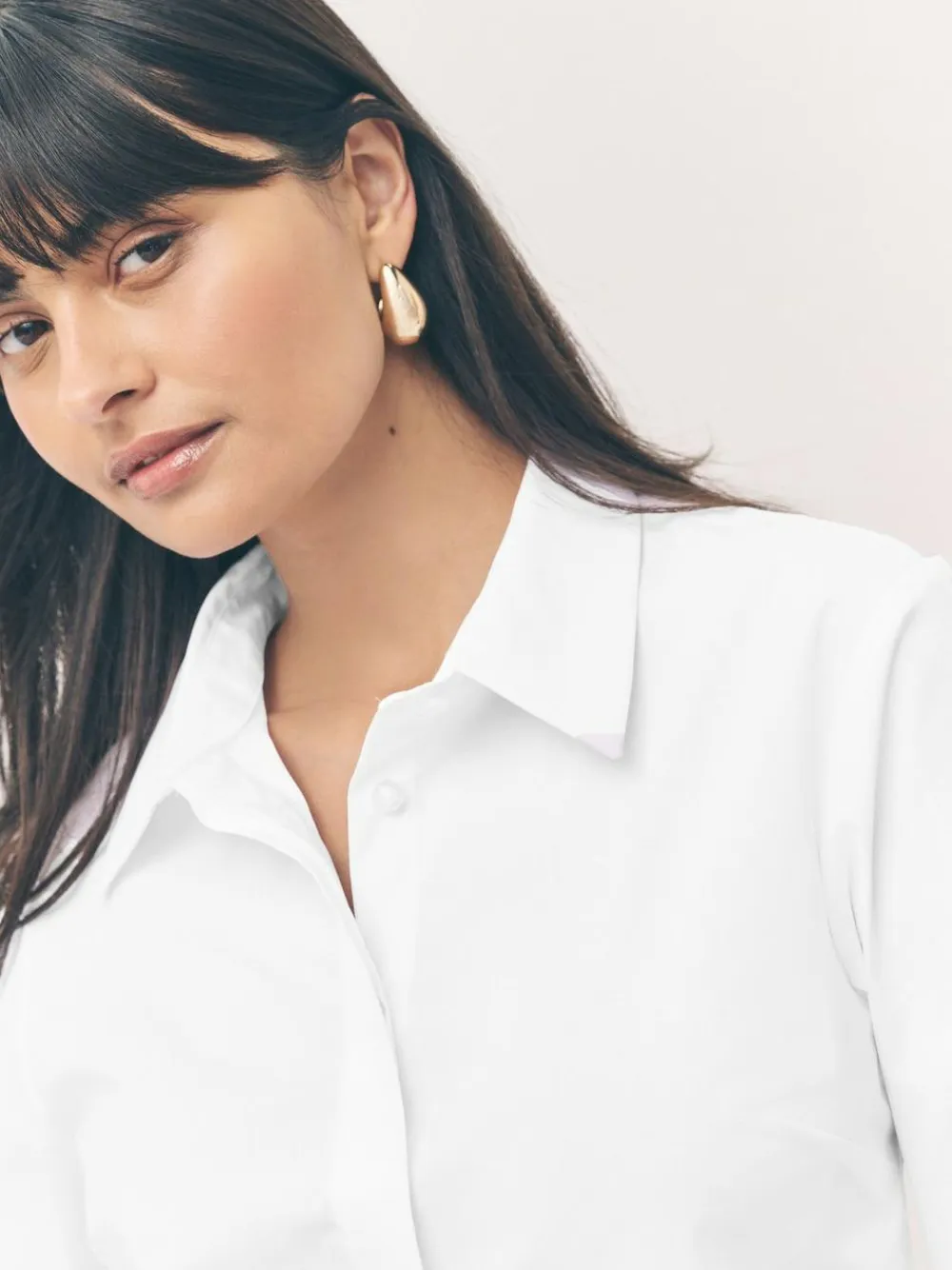 Next Fitted Stretch Essential Long Sleeve Shirts 2 Pack White