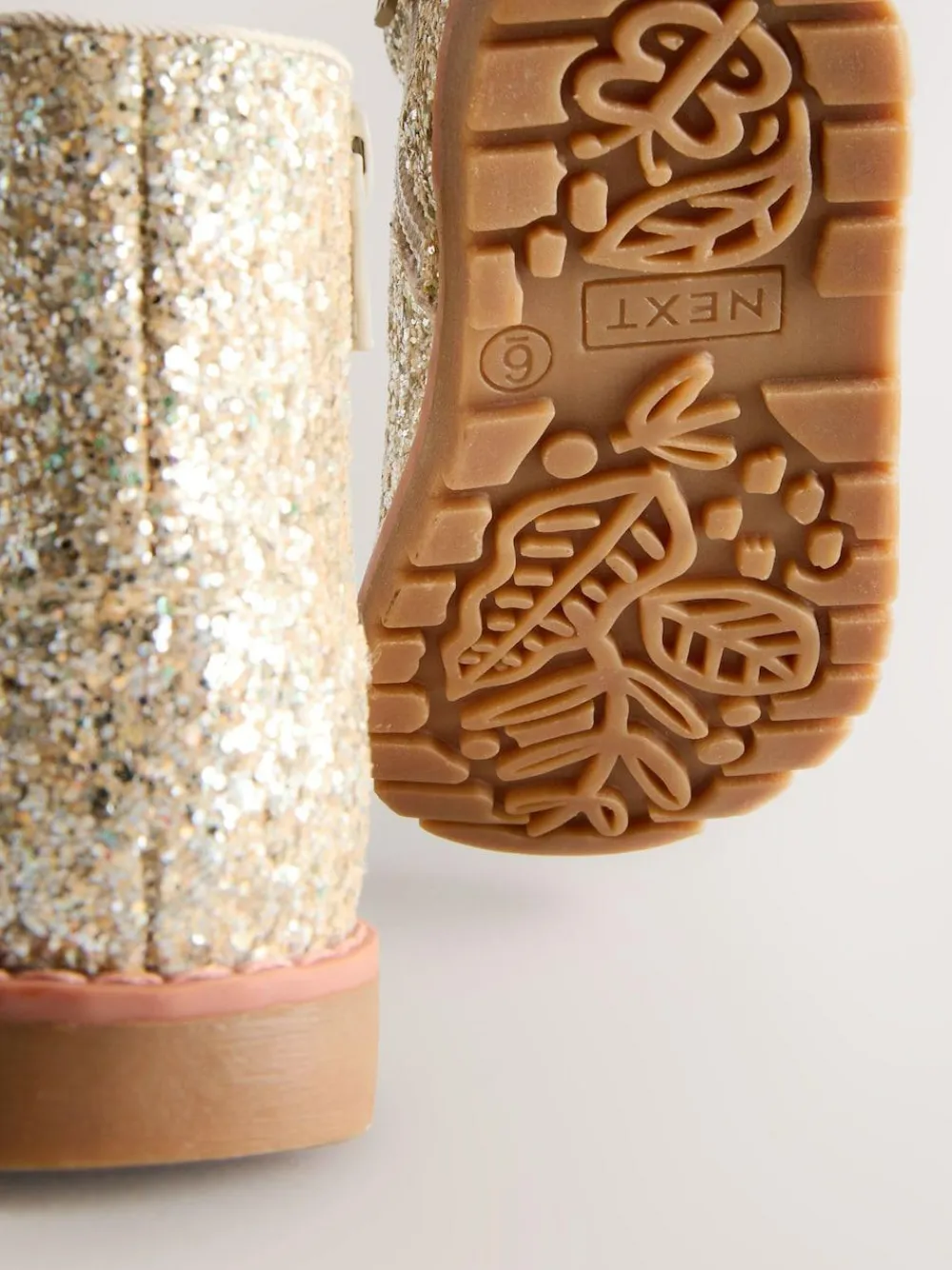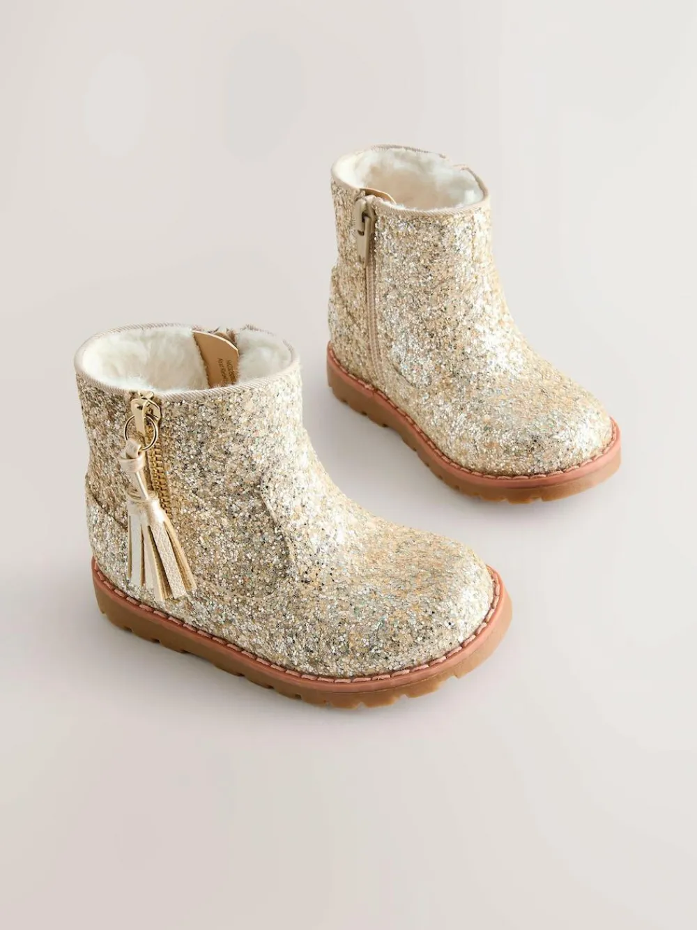 Next Gold Glitter Standard Fit (F) Chelsea Zip Tassel Ankle Boots^ Baby Boots|Boots