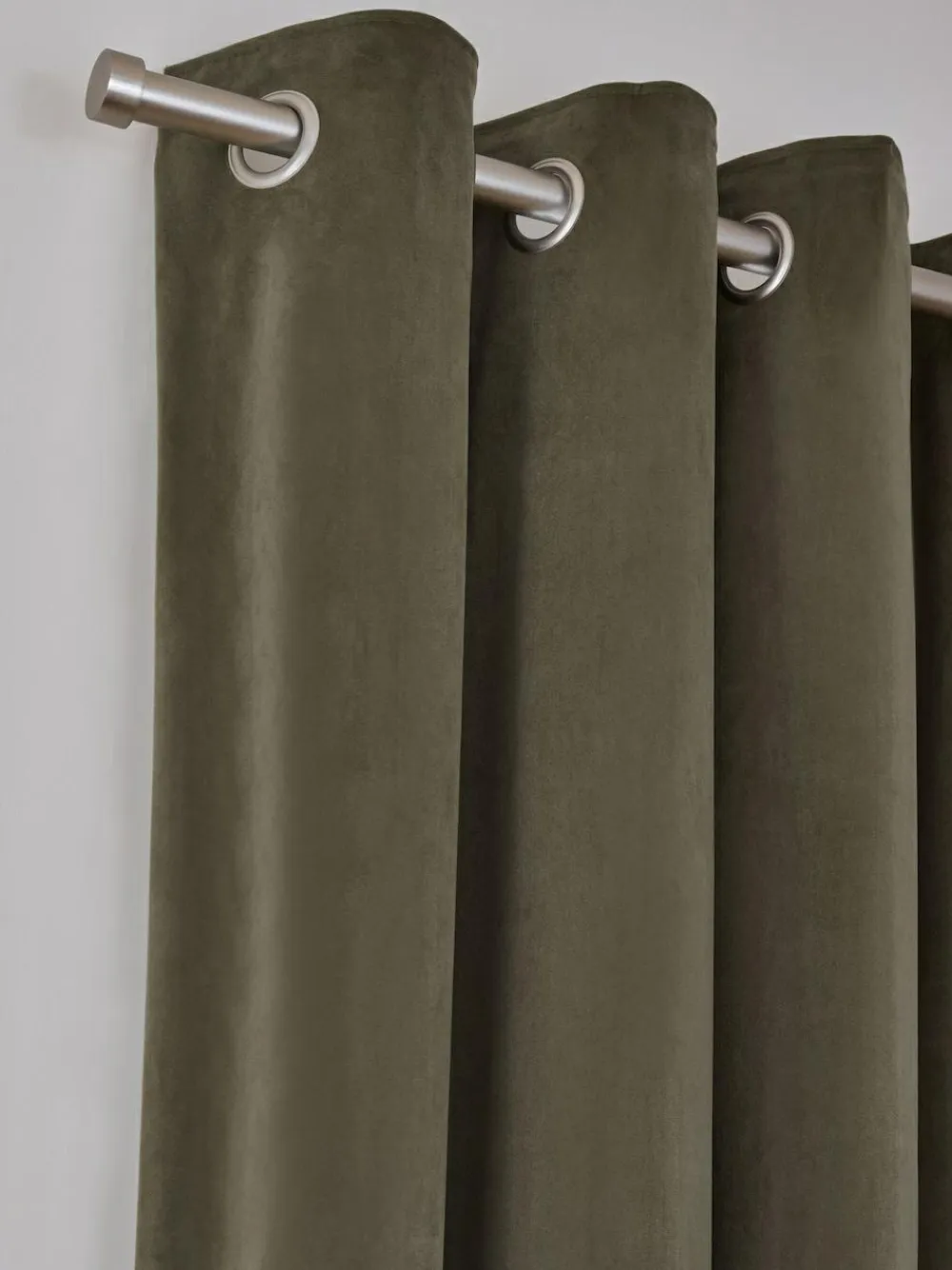 Next Green Light Olive Matte Velvet Blackout/Thermal Curtains^ Curtains & Blinds