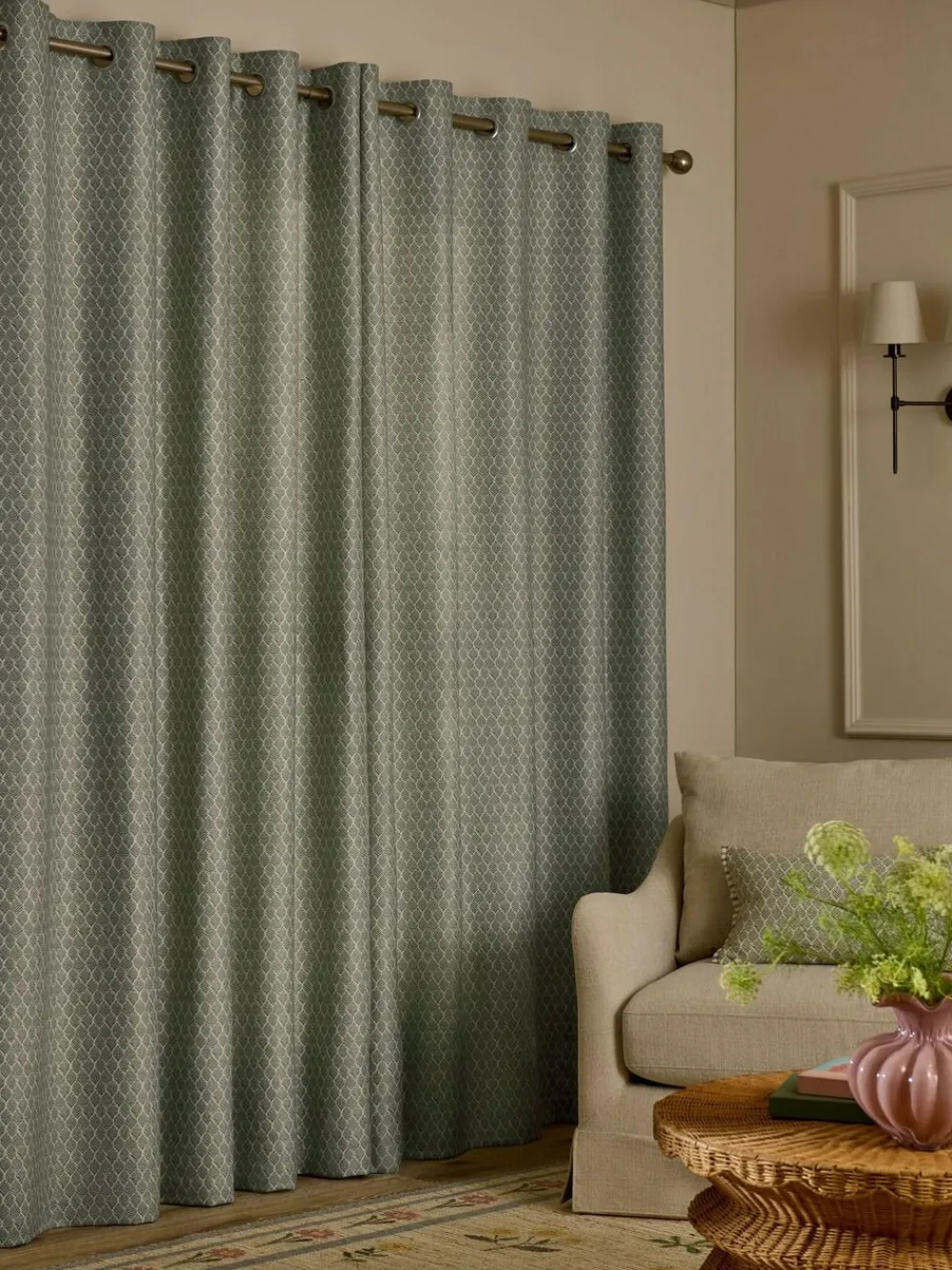 Next Green Mini Leaf Jacquard Eyelet Lined Curtains^ Curtains & Blinds