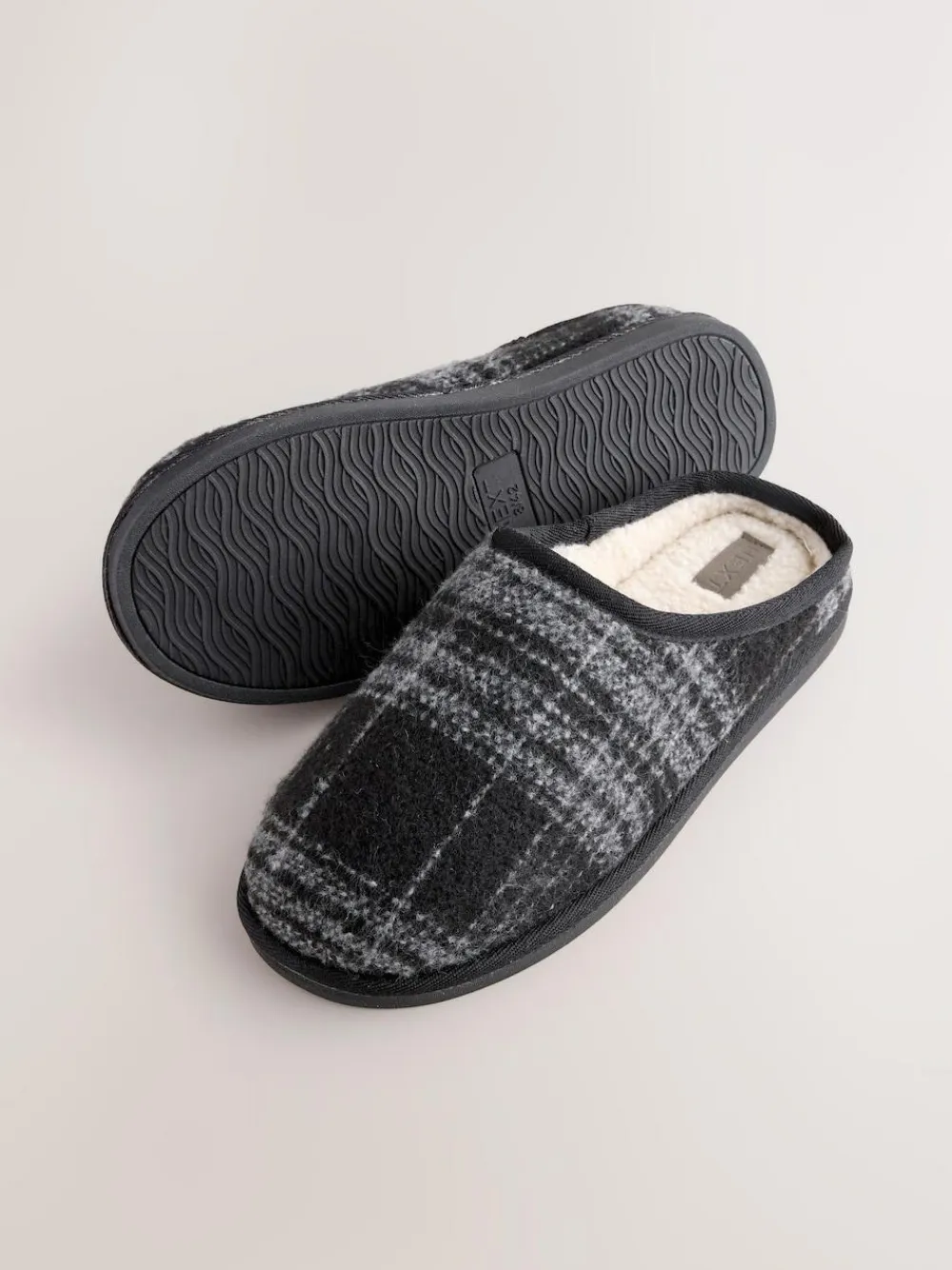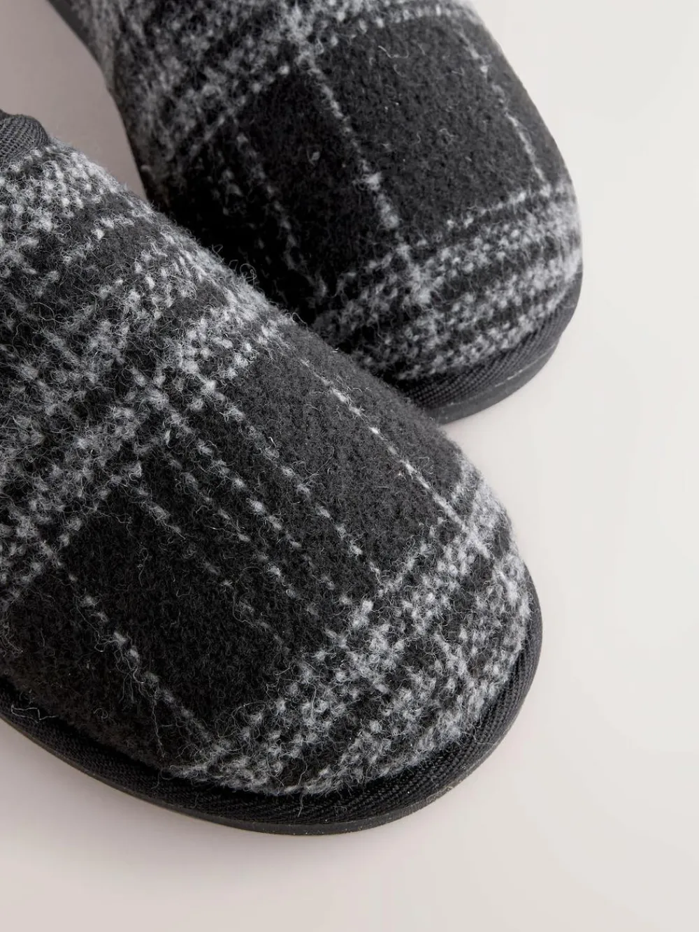 Next Grey Check Mule Slippers^ Slippers|Slippers