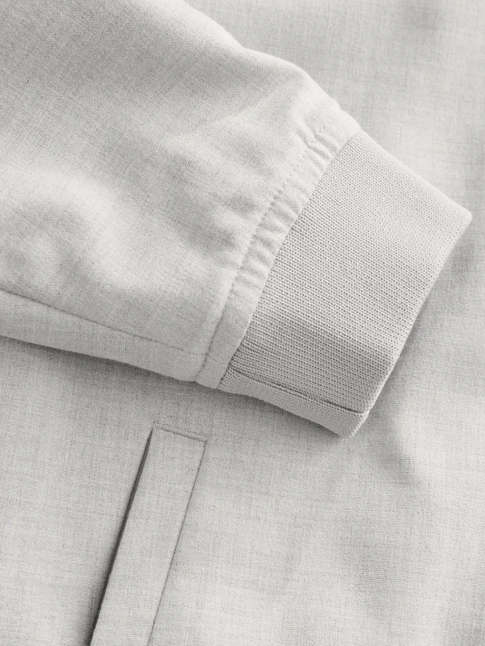 With an elevated texture fabric for a smart-casual look, this bomber jacket features a ribbed collar and hems, side pockets and a zip fastening, perfect for throwing over a polo shirt or t-shirt, with matching trousers available. The jacket is finished with a printed lining, with raglan-style sleeves. Smart fabric Zip fastening Raglan sleeves Ribbed hems Side pockets Machine washable. Main 55% Recycled polyester, 32% Viscose, 11% Polyester, 2% Elastane. Body Lining 100% Recycled polyester. Sleeve Lining 100% Polyester.