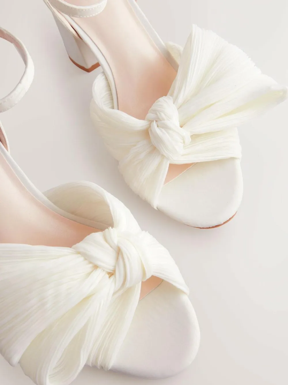 Walk in comfort on your big day with these ivory wedding bridal heels. The perfect pair of heels to step down the aisle in, these open toe heels feature a bow design for added glam and a block heel for all day comfort. Complete with Forever Comfort insoles. Bridal shoes Block heel Bow design Forever Comfort insoles Heel height 9.5cm. Upper – Textile, Lining & Sock – Other Materials, Sole – Other Materials.