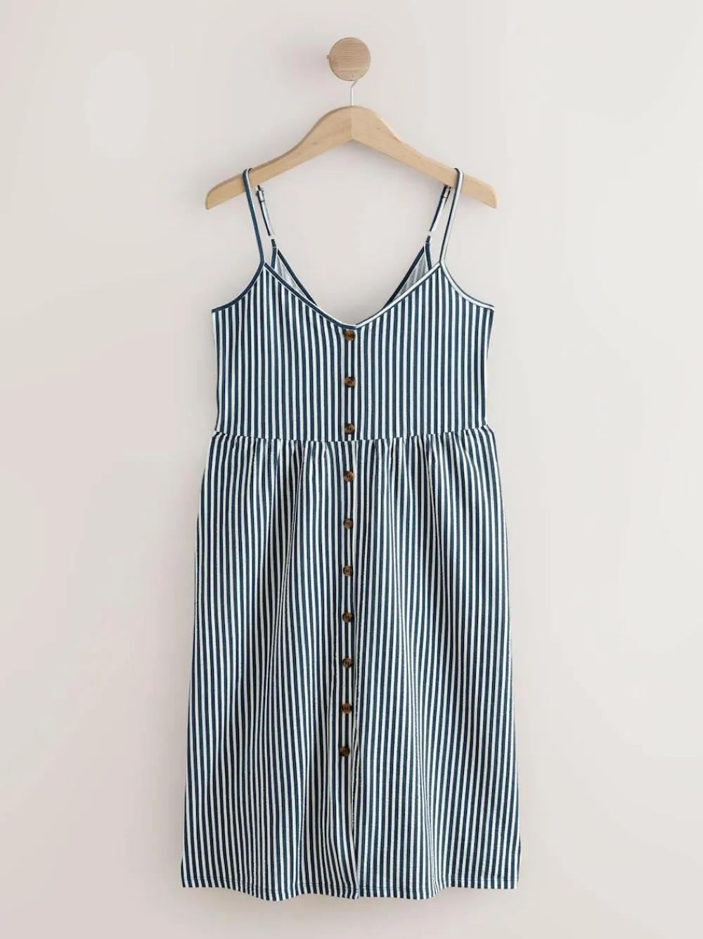 Made from a pure cotton jersey fabric, this midi-length dress features button detailing to the front, thin shoulder straps and a v-shaped neckline Midi-length 100% cotton Button front Adjustable shoulder straps Machine washable. 100% Cotton. Items with the curve logo are available in sizes 18 and above., Our tall collection is designed to fit women 5’10” and above. This has been proportionally increased through the body, leg and sleeve to achieve the perfect fit. Available in sizes 8-20.