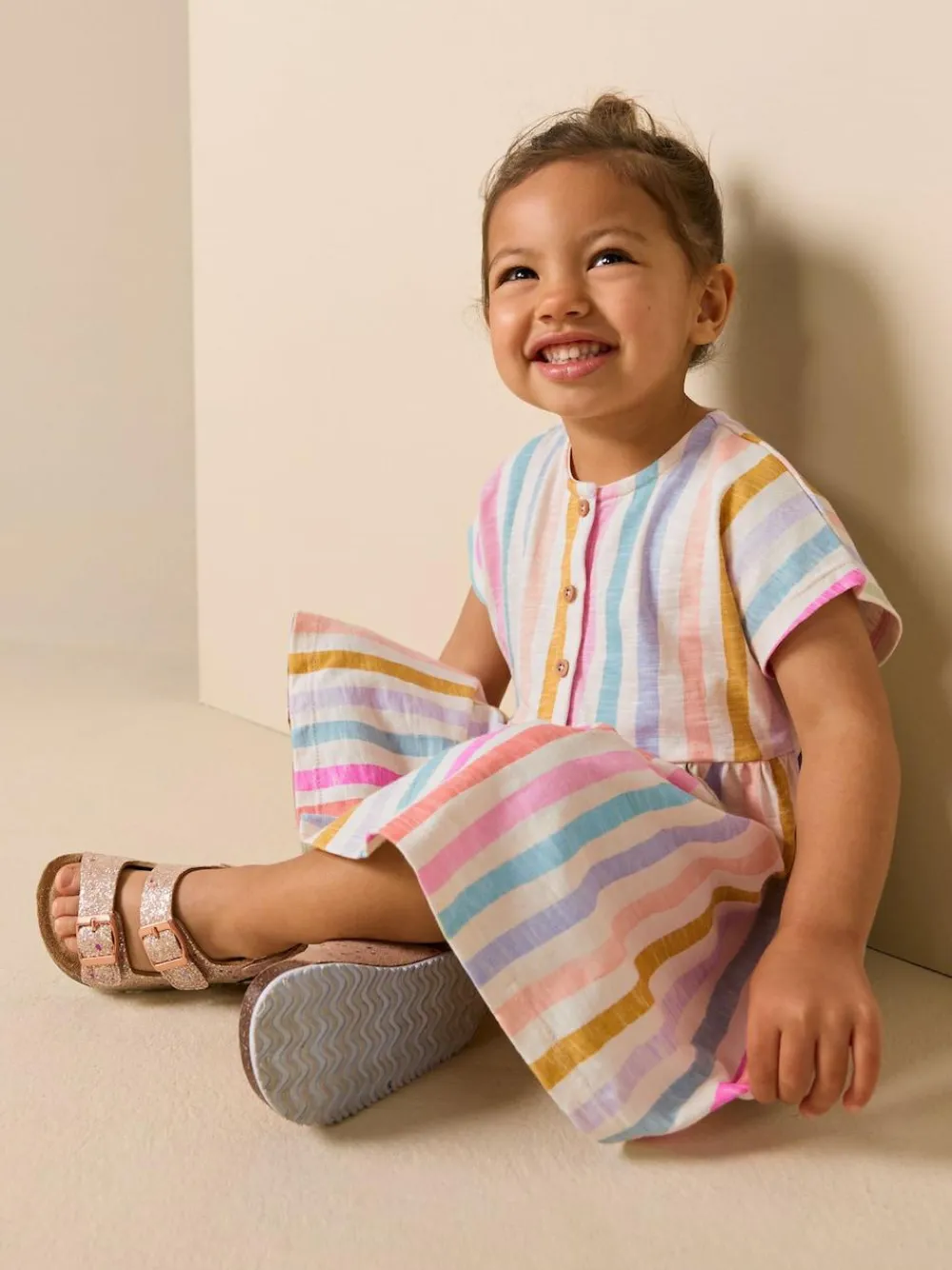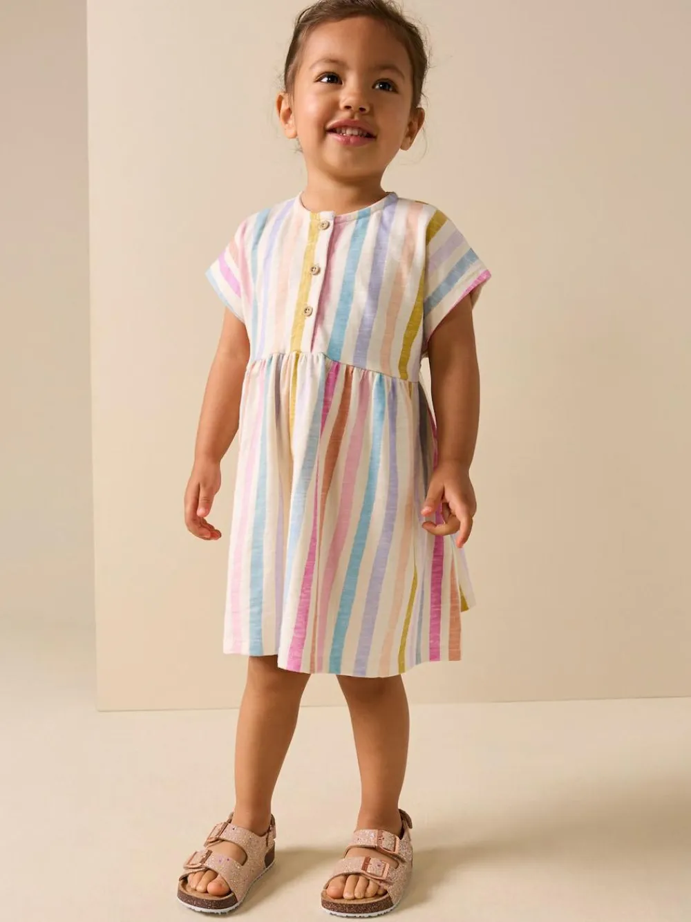 This charming jersey dress is perfect for your little one. Crafted from comfortable textured cotton fabric, it features short sleeves and a neat button fastening front for easy dressing. The sweet print makes it ideal for sunny days and playful occasions. Textured cotton fabric Short sleeve design Button fastening front Machine washable. 100% Cotton.