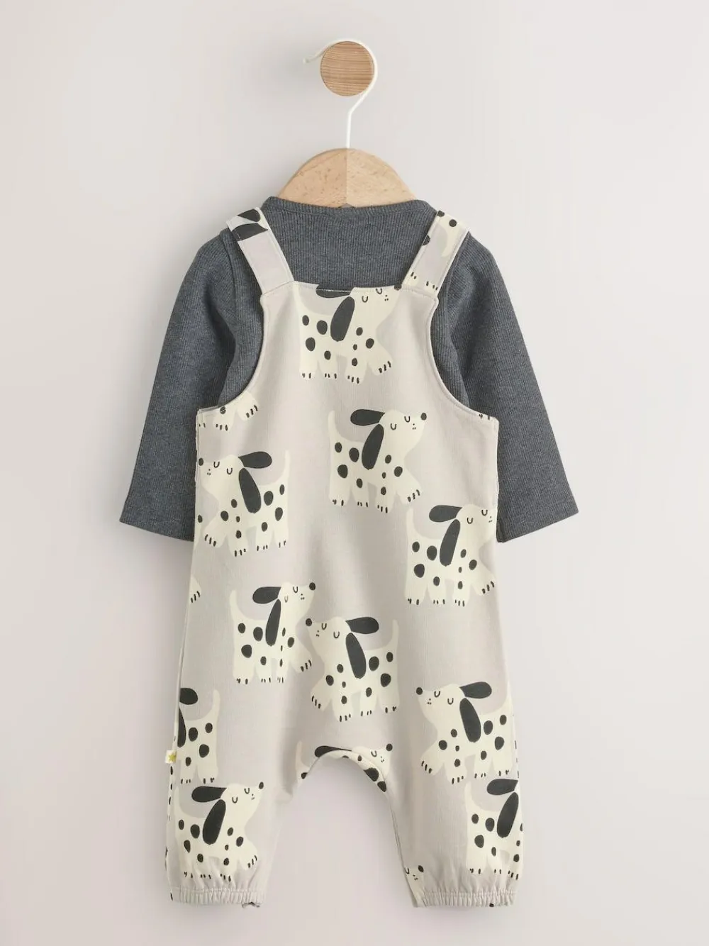 This 2-piece set is comfortable and cute, featuring a soft cotton-blend bodysuit with long sleeves and a popper fastening for easy changing, alongside a pair of pure-cotton dungarees with shoulder straps, available in a selection of different colours and prints. 2-piece set Long sleeve bodysuit Cotton-blend Popper fastening to the crotch 100% cotton dungarees Shoulder straps Machine washable. Dungaree 100% Cotton. Bodysuit 95% Cotton, 5% Elastane. Warning: Keep away from fire and flames.