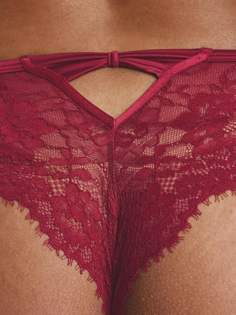 Next Lace Bow Back Knickers Burgundy Red