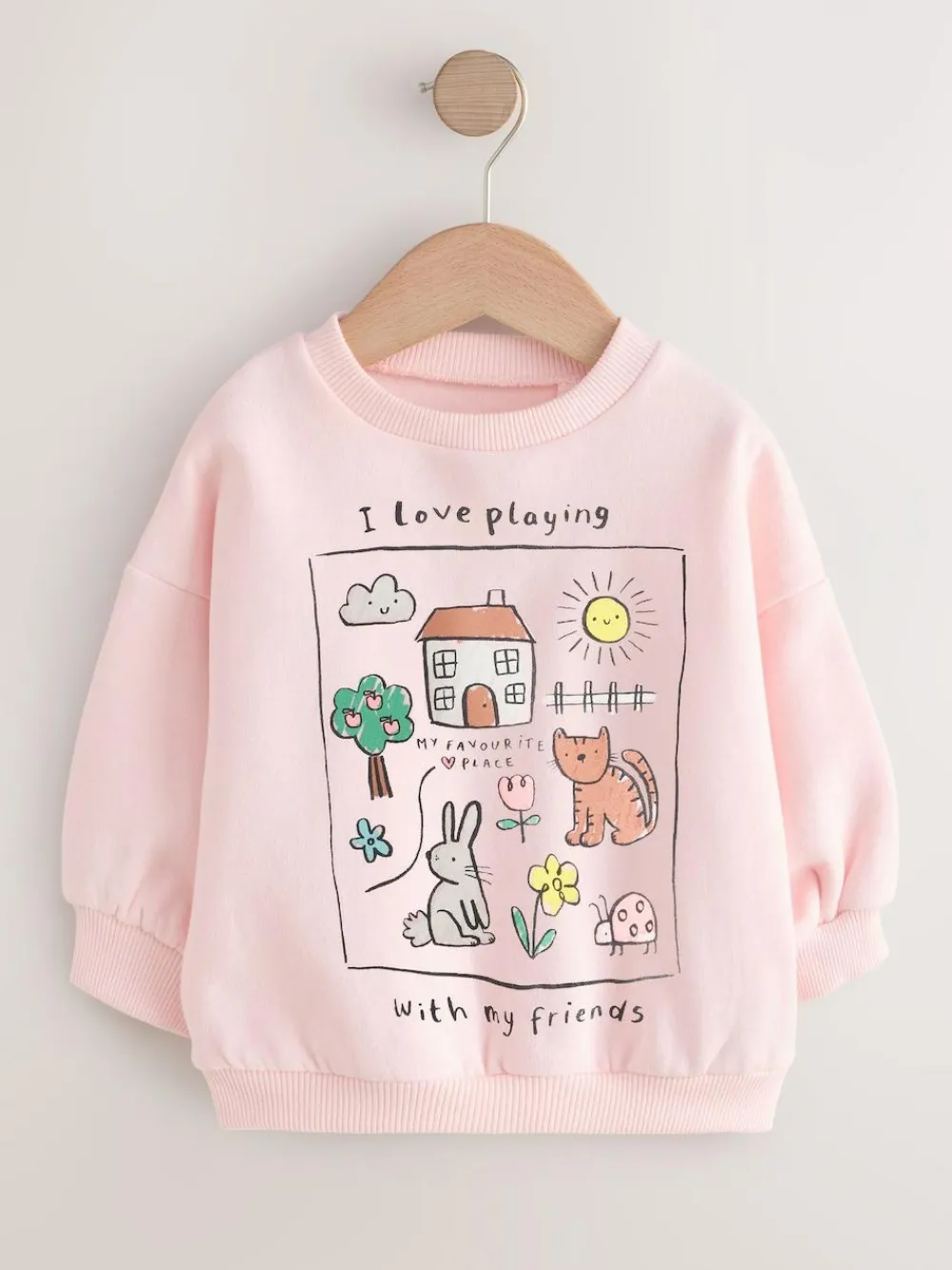 Next Light Pink House Crew Neck Sweatshirt (3mths-7yrs)^ Sweatshirts & Hoodies|Nightwear