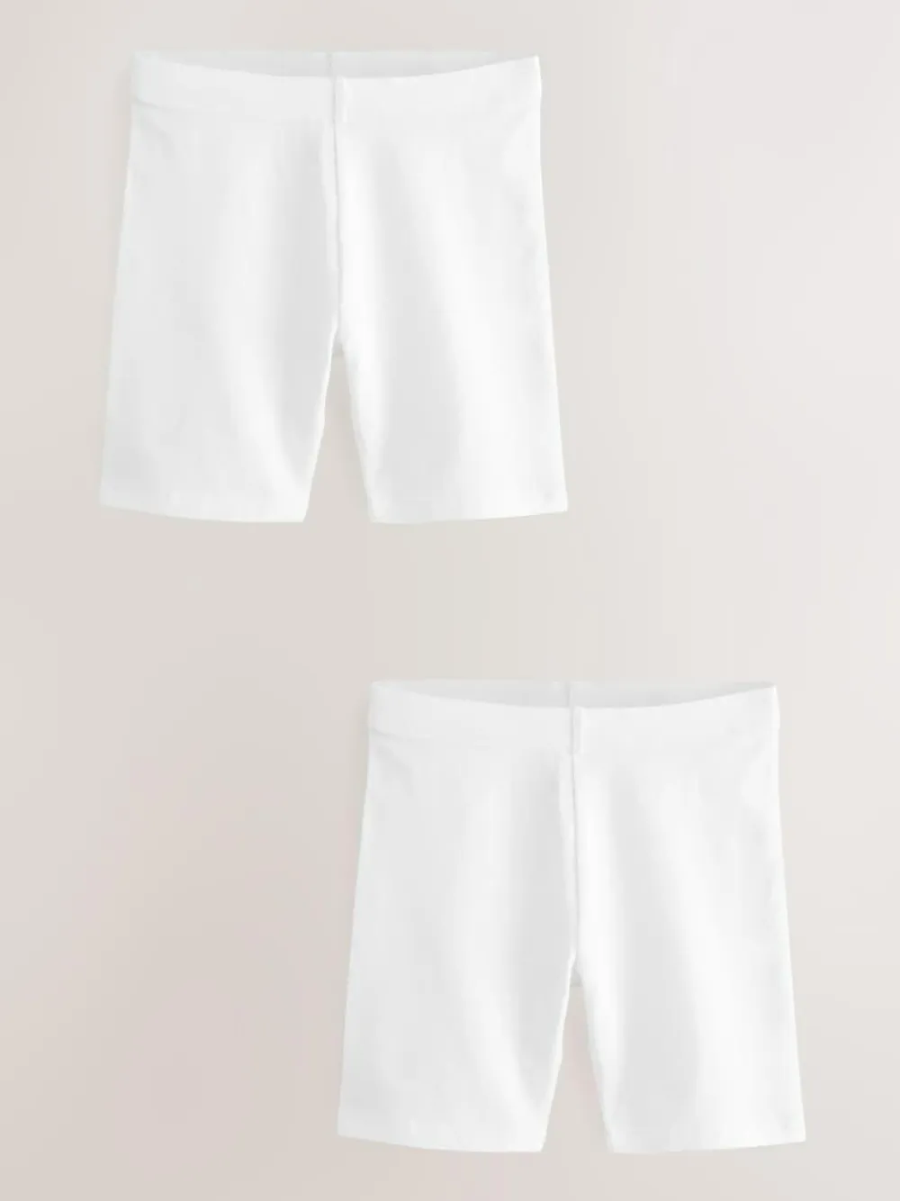 Cosy, comfortable and full of stretch, our 2 pack of girl’s white cycle shorts make a great addition to her sports style. In a cotton rich blend, these pull-on style shorts are complete with an elasticated waistband and cut in a slightly longer length for added comfort. Pull on style Perfect for PE and sports 2 pack Elasticated waistband Cotton rich Machine washable. 2 x Shorts 92% Cotton, 8% Elastane.