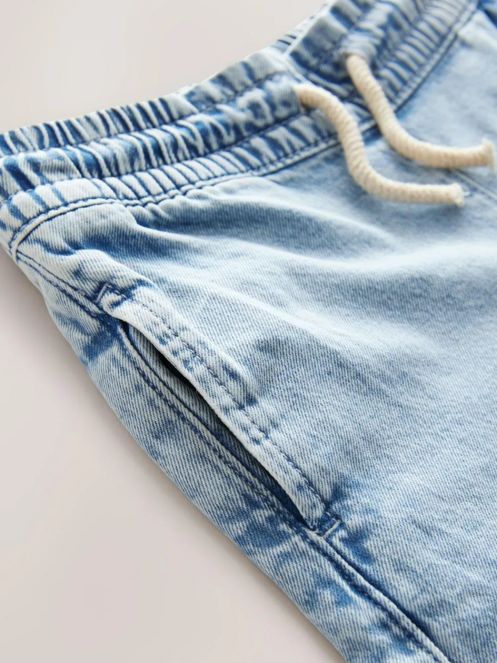 She’ll love the comfortable and easy design of these mid-blue trendy wide leg jeans, made from a cotton-rich denim fabric with an elasticated waistband for pull-on wear, finished with an adjustable drawstring and side pockets. Wide leg Cotton-blend fabric Elasticated waistband Adjustable drawstring Side pockets 80% Cotton, 20% Viscose.