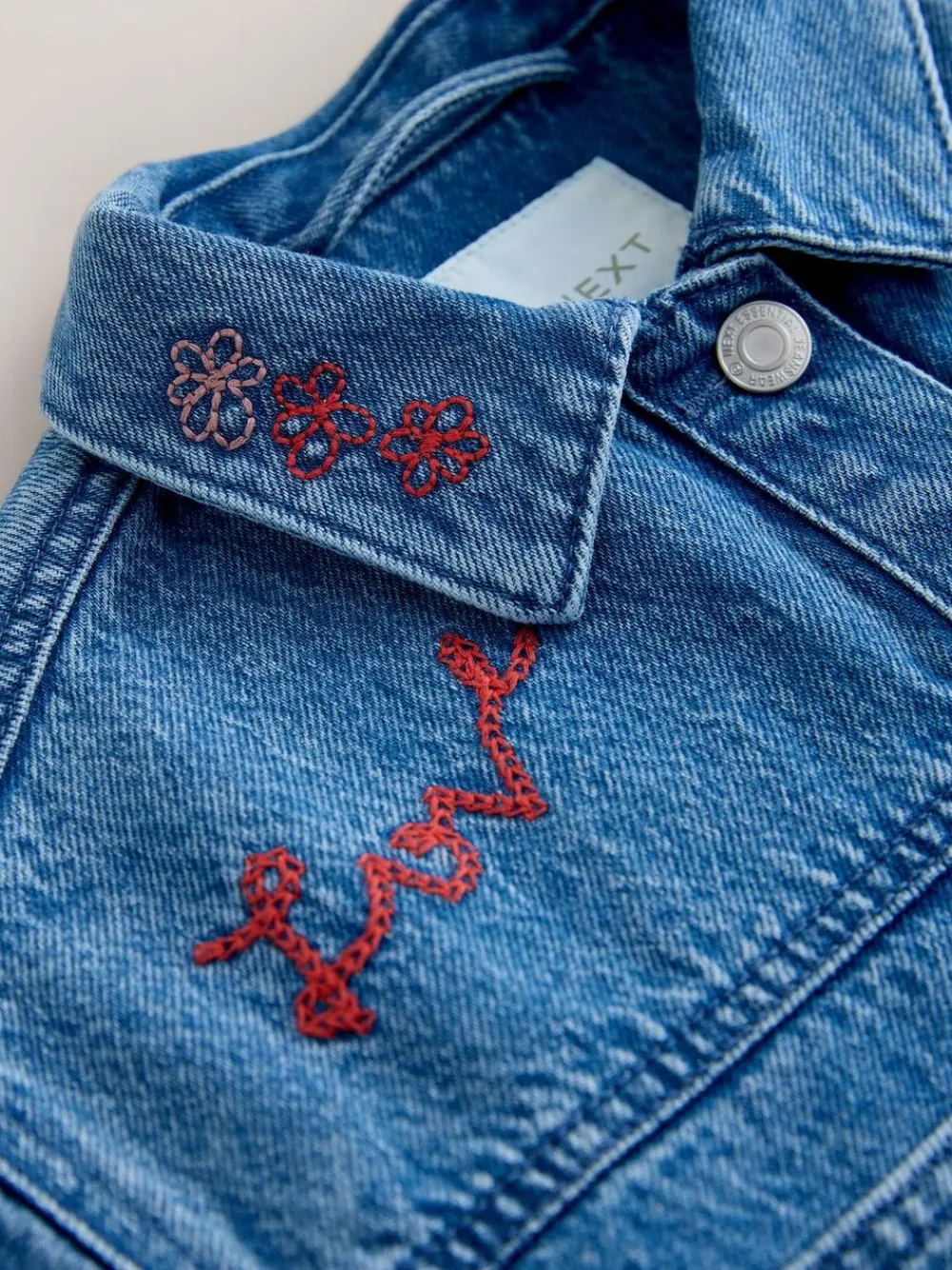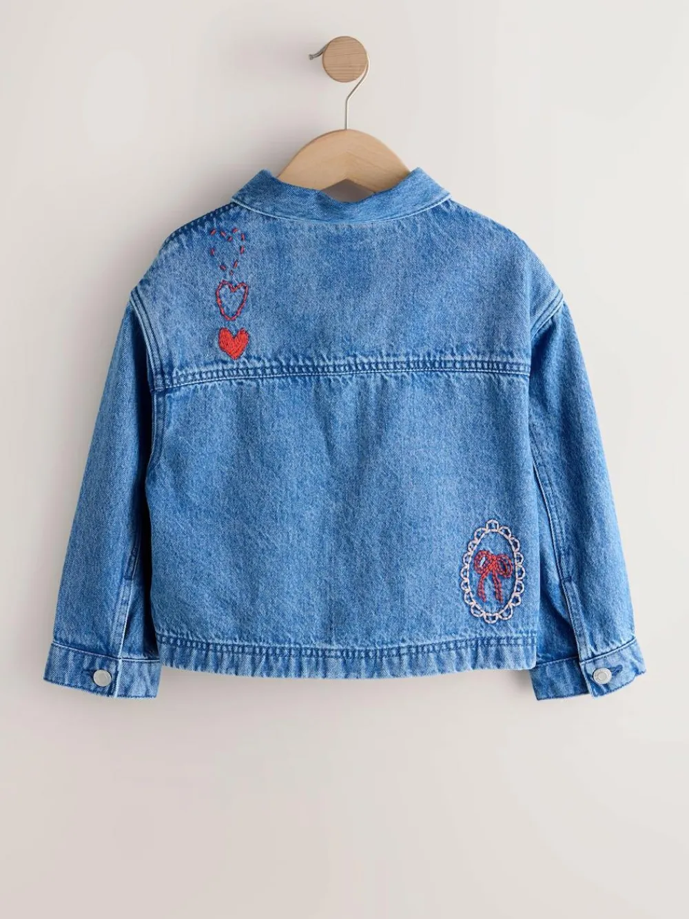 Next Mid Blue Heart Embroidered Denim Shacket (3-16yrs)^ Jackets & Coats|Snowsuits & Coats