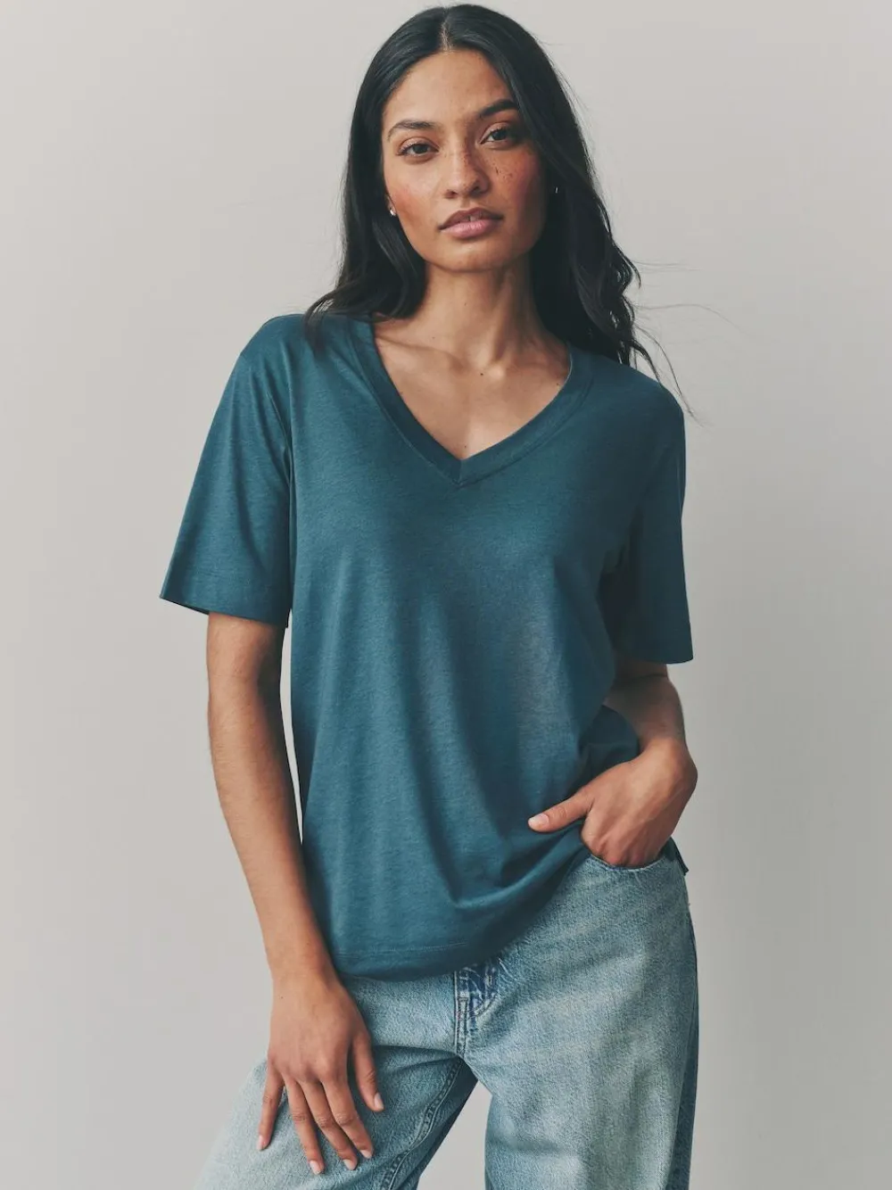Refresh your everyday staples with this red, teal and brown 3-pack of t-shirts, made from a super soft cotton-blend fabric with a trimmed V-shaped collar, a slouchy shape and short sleeves for a premium take on a classic essential. 3-pack Cotton-blend V-shaped neck Short sleeves Drape shape Machine washable. 3 x T-shirt 50% Cotton, 50% TENCEL™ modal.