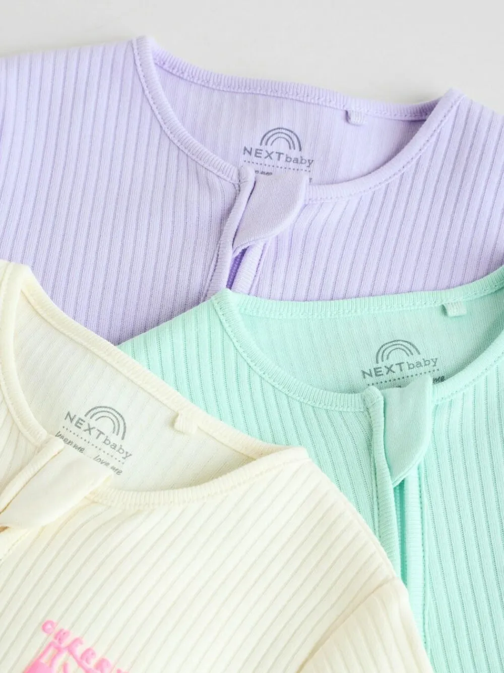 Next Multi 3 Pack Two Way Zip Baby Sleepsuits (0mths-3yrs)^ Nightwear