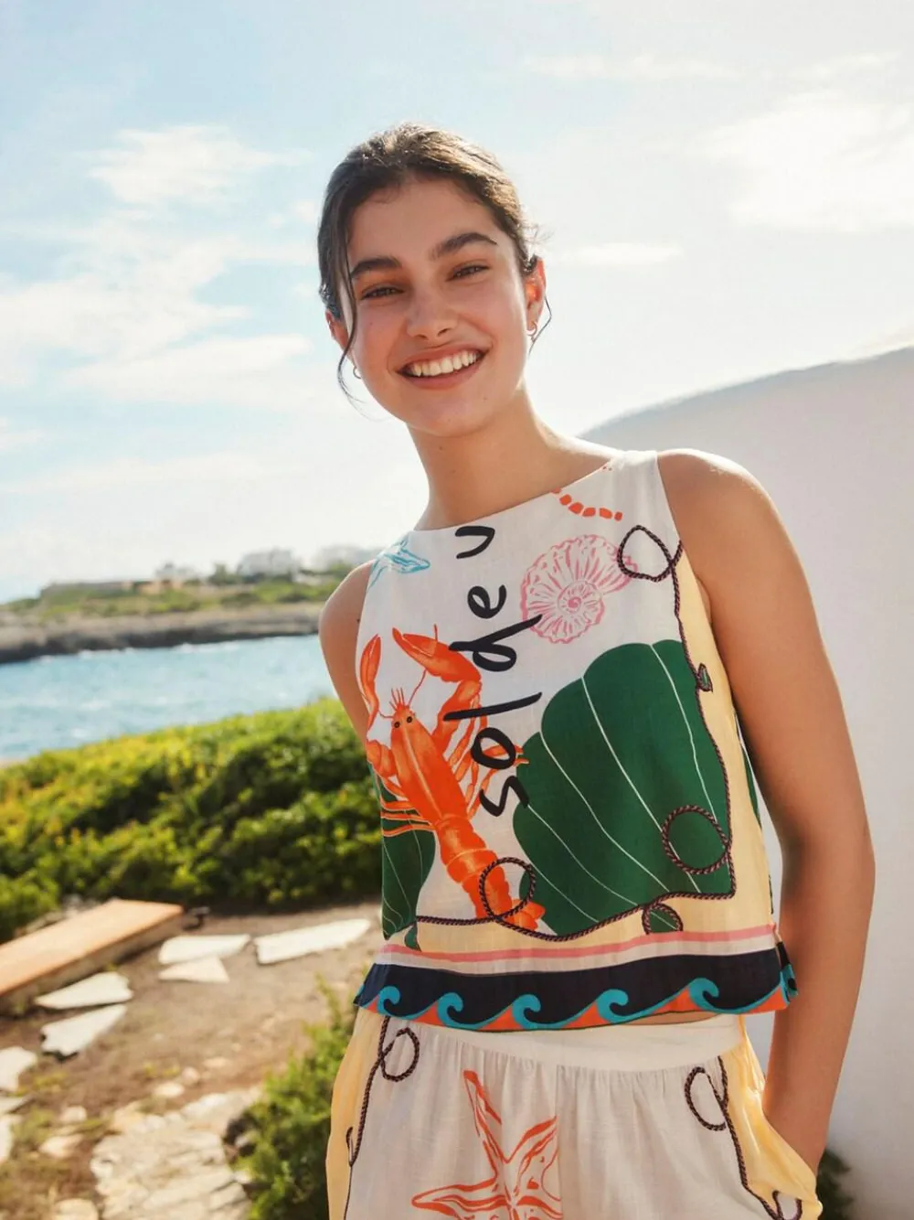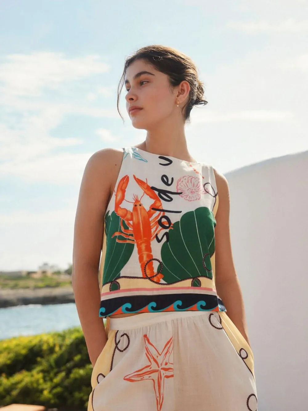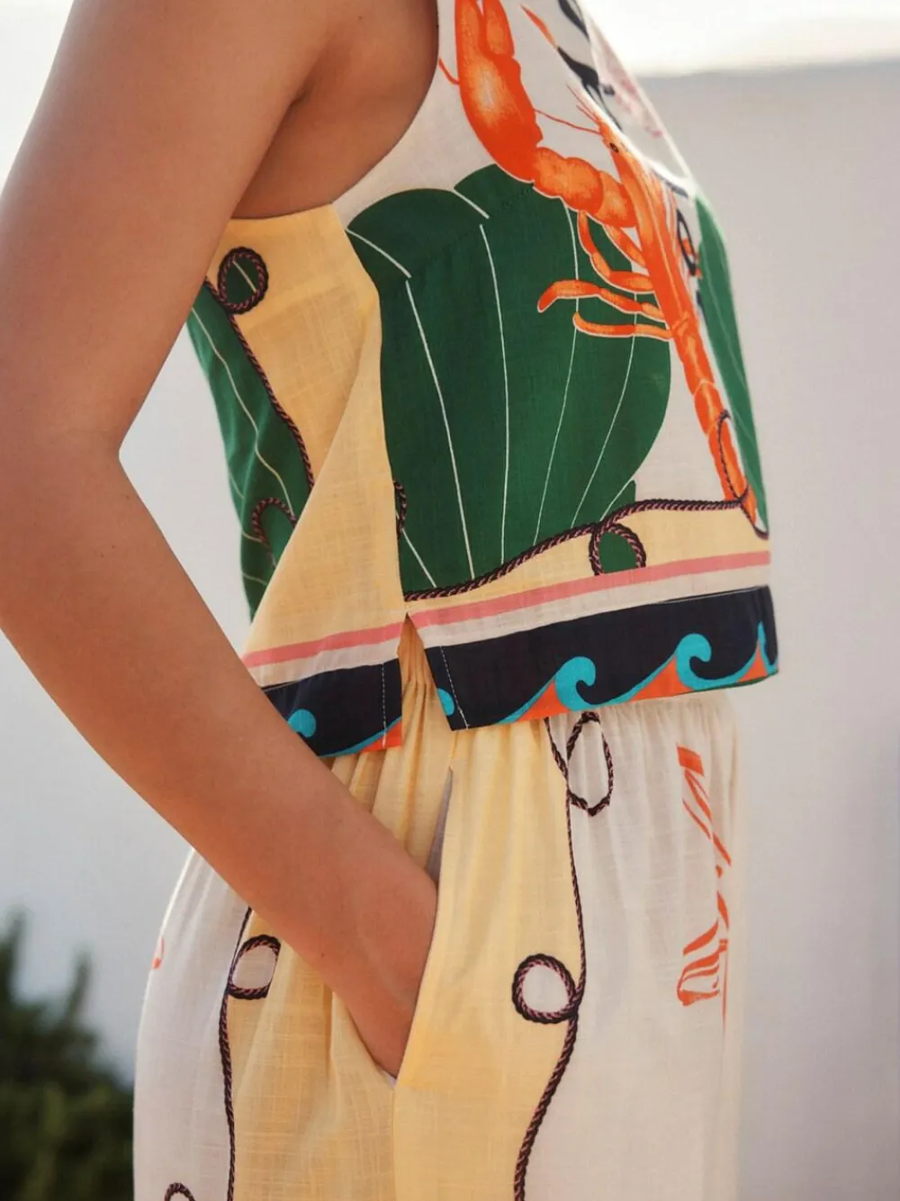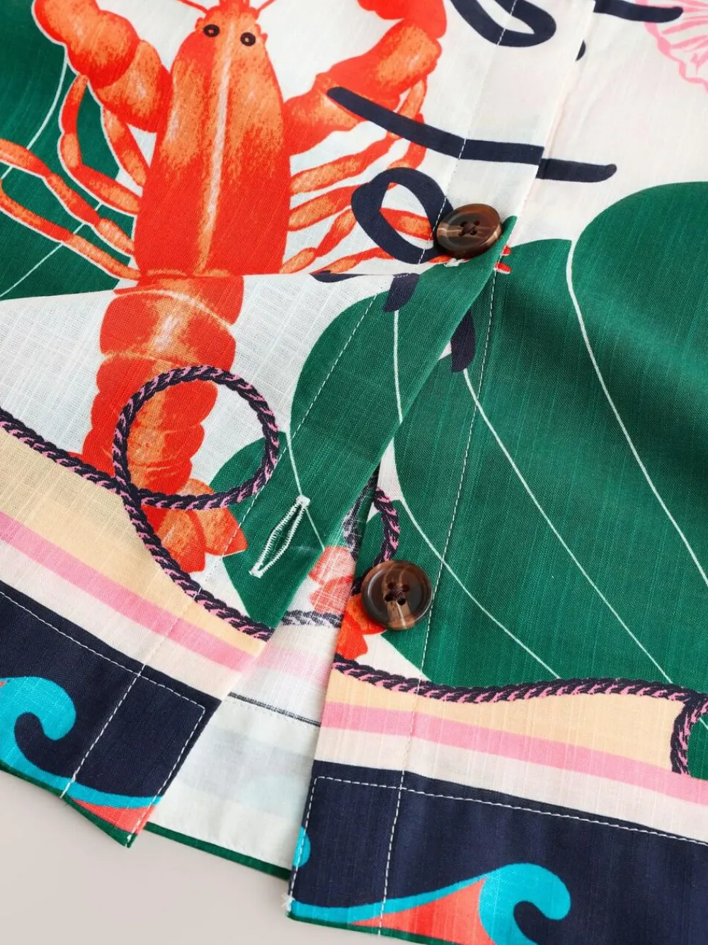 Make a fun statement in this vibrant Multi Shell Top, a piece that’s ready for holiday vibes. Featuring a bold sea life print with a lobster and shells, it has a clean neckline and secure button back fastening. As part of a coord set, this sleeveless top is perfect for a trendy daytime look or relaxing on a summer holiday. Button back fastening Clean neckline Sea life print Part of a coord set Machine washable. Main 61% Livaeco™ Viscose, 39% Cotton. Lining 100% Cotton. Items with the curve logo are available in sizes 18 and above.